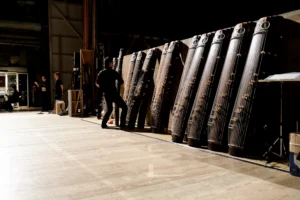 照明機材を移動する人たち、