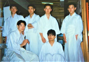 photo: 神社にこもって神主修行。上段左から2番目が深田先生。