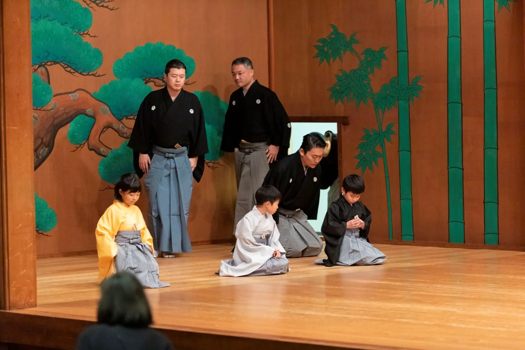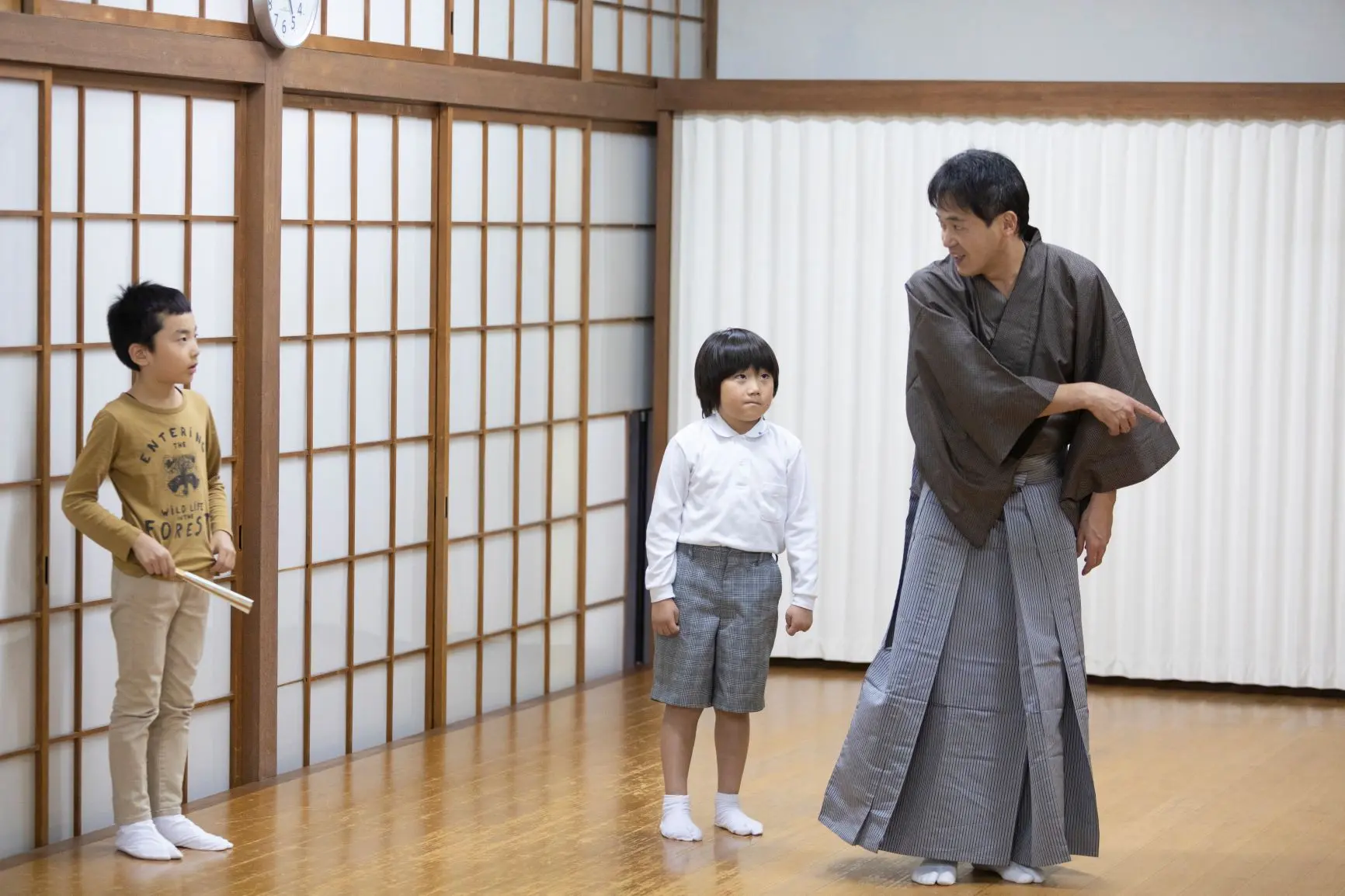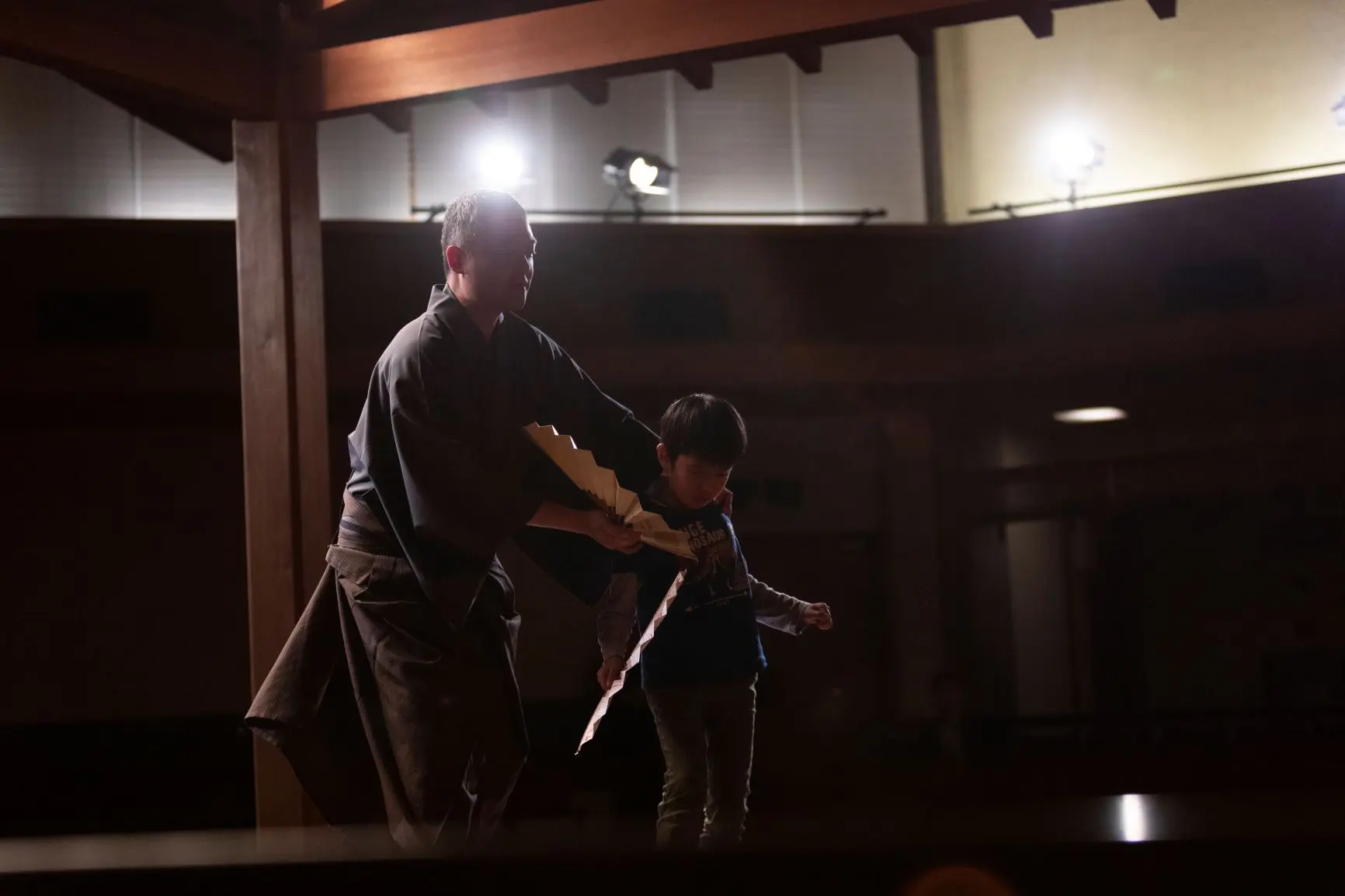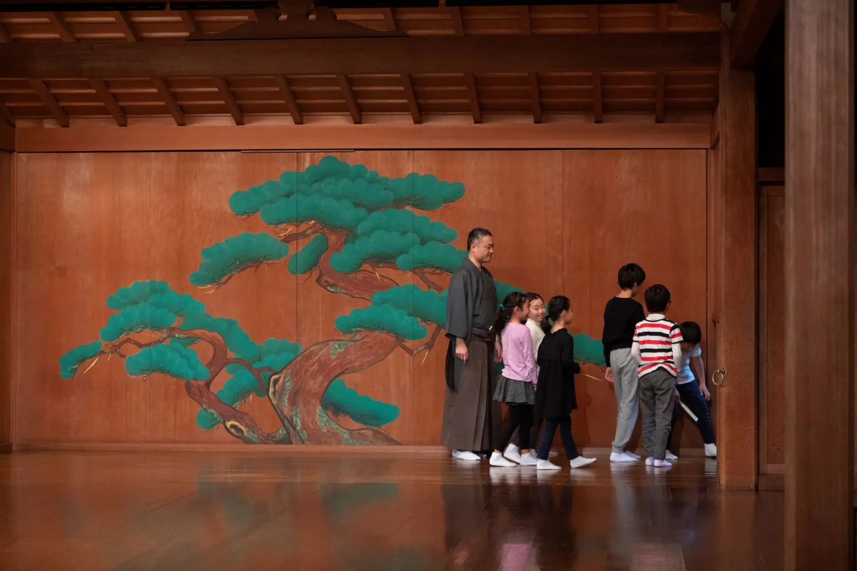 お稽古と発表会を支える先生方② 稽古場~宝生能楽堂 2020.05.01 コラム 能楽は、梅若能楽学院会館でのお稽古でした。 広い和室や、本物の能舞台を使って。 声の出し方、からだの動き。 申合せ(リハーサル)と本番では、装束のお針子仕事も! 子供一人ずつに着付けをして下さるのも先生方。 竹竿で揚幕の上げ下げ、切戸口の開け閉めも。 時にきびしい指導もありましたが、発表会を終えた子供たちの嬉しそうな顔に先生方もニコニコでした。 撮影:菅原康太