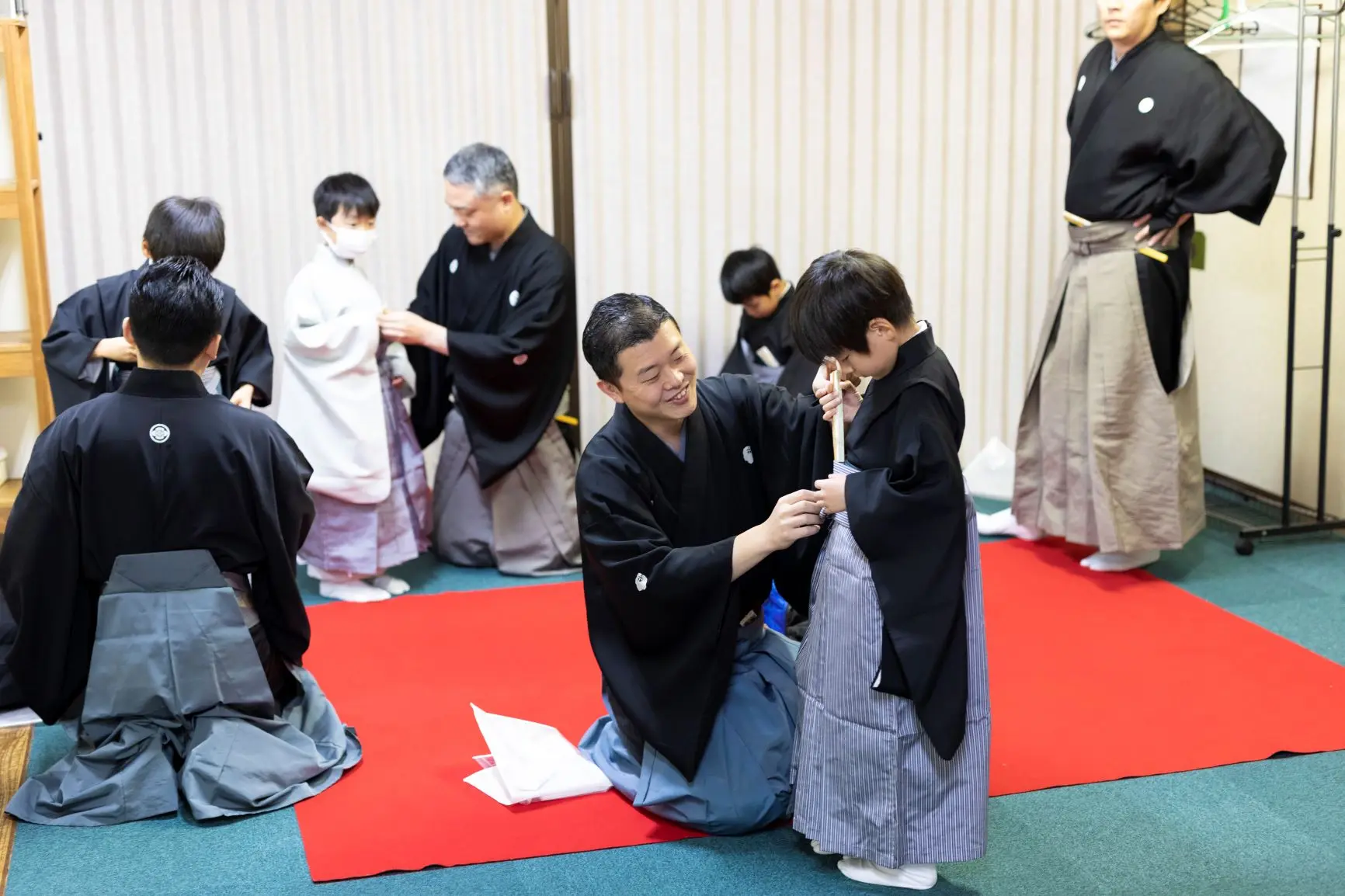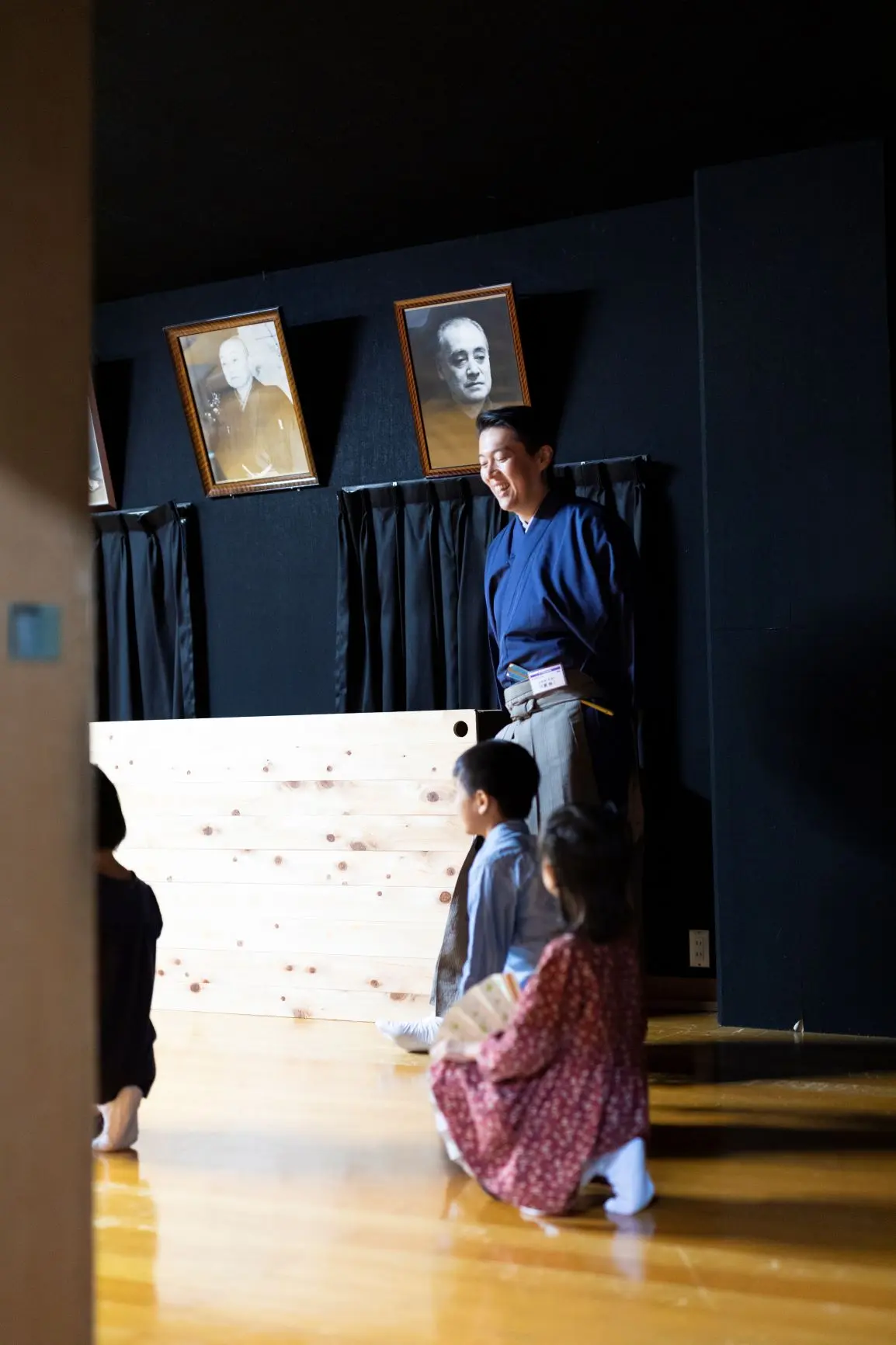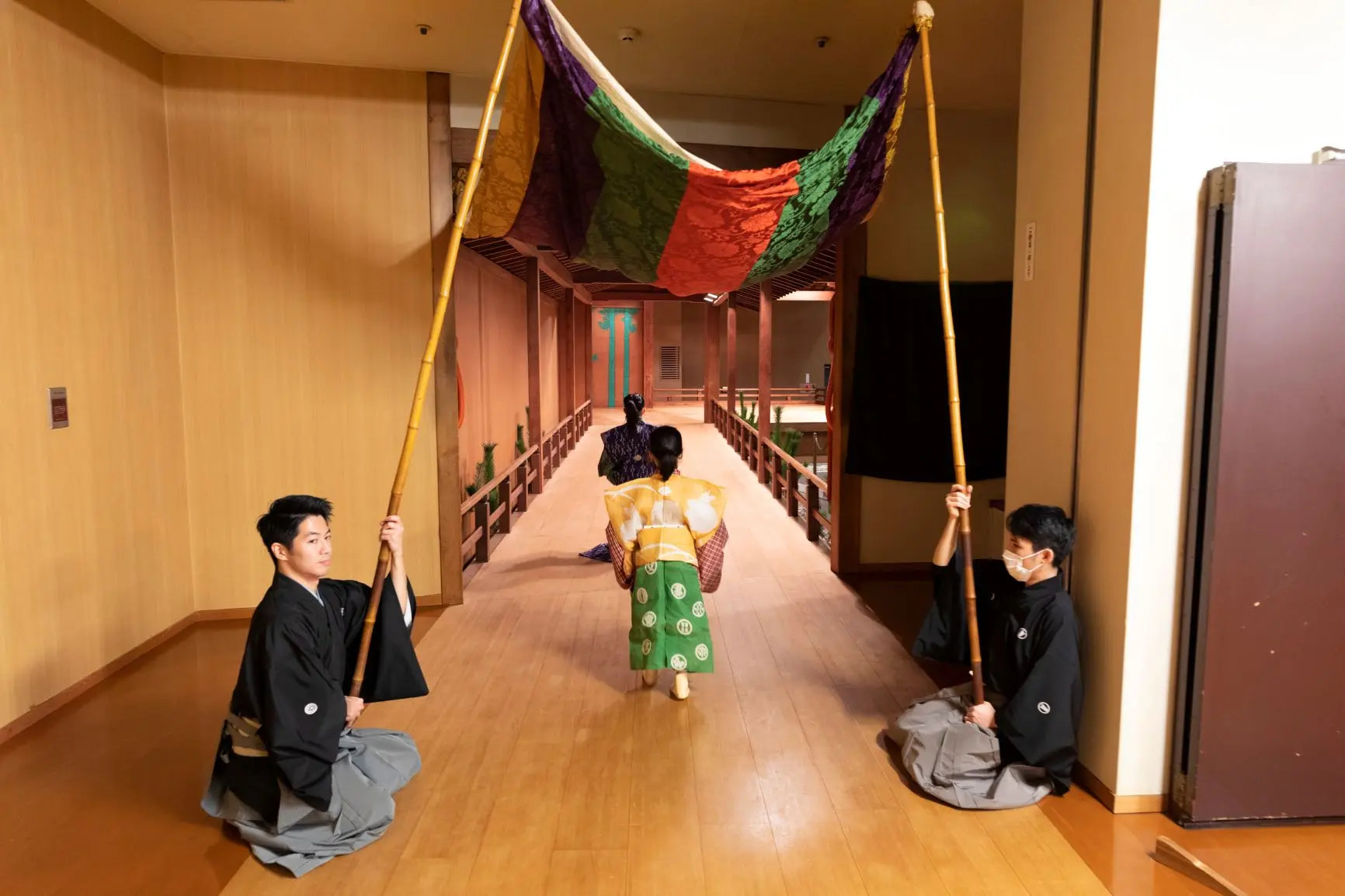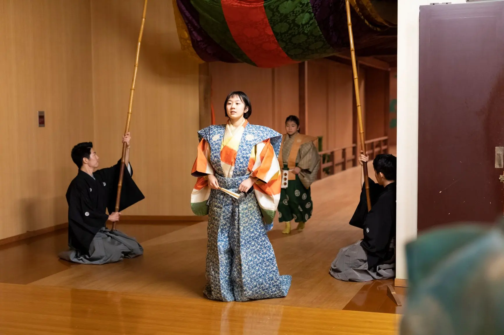 お稽古と発表会を支える先生方② 稽古場~宝生能楽堂 2020.05.01 コラム 能楽は、梅若能楽学院会館でのお稽古でした。 広い和室や、本物の能舞台を使って。 声の出し方、からだの動き。 申合せ(リハーサル)と本番では、装束のお針子仕事も! 子供一人ずつに着付けをして下さるのも先生方。 竹竿で揚幕の上げ下げ、切戸口の開け閉めも。 時にきびしい指導もありましたが、発表会を終えた子供たちの嬉しそうな顔に先生方もニコニコでした。 撮影:菅原康太