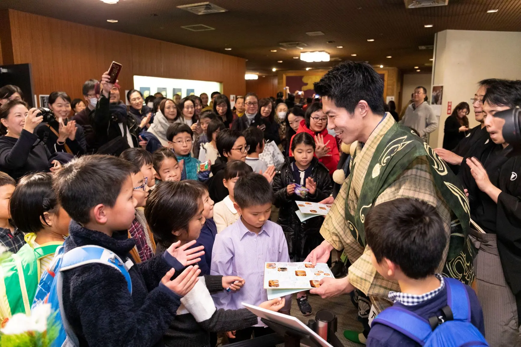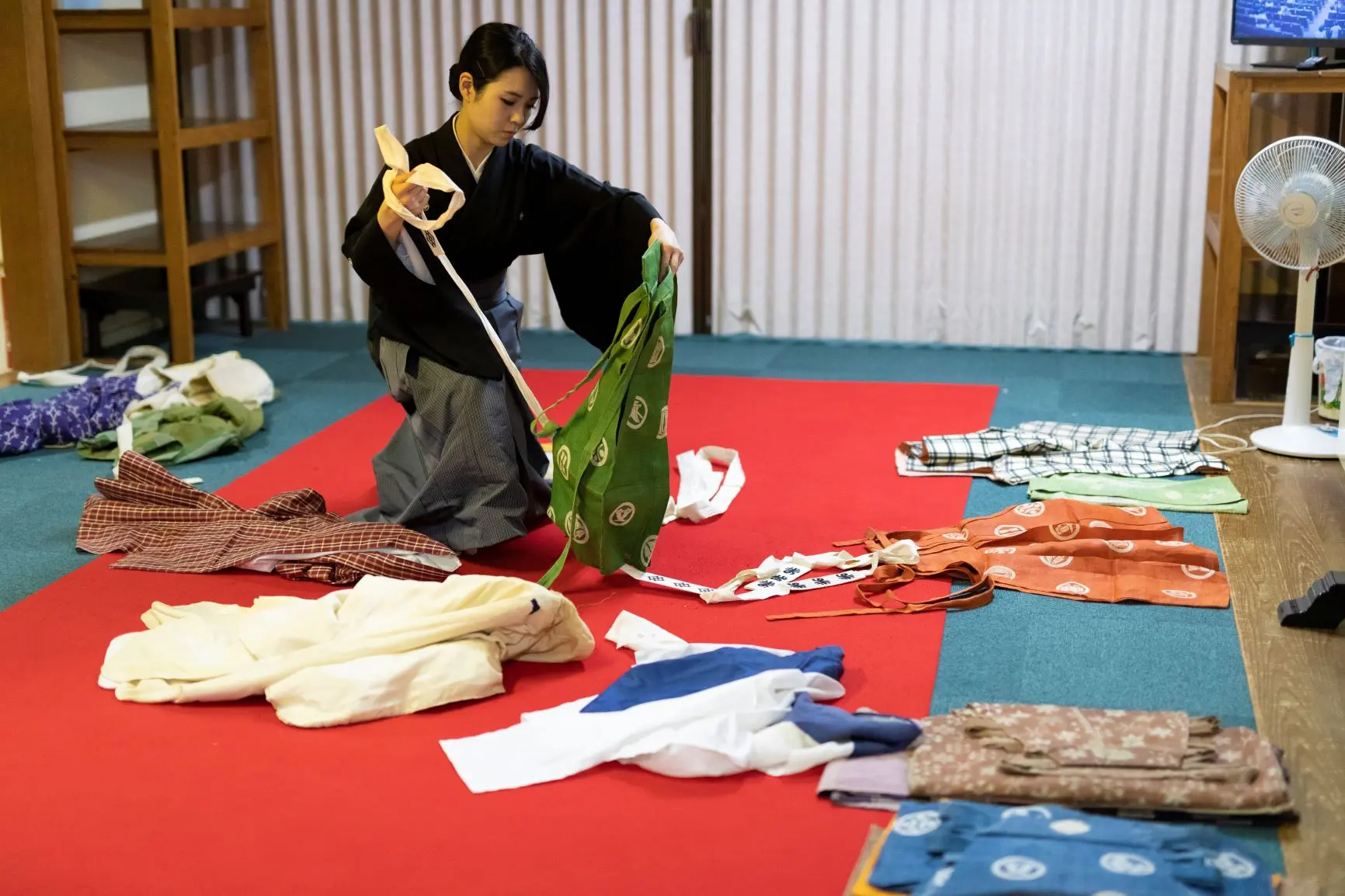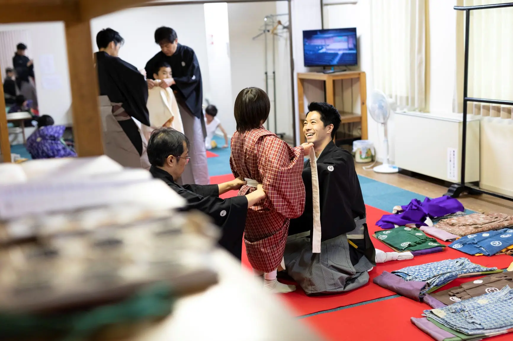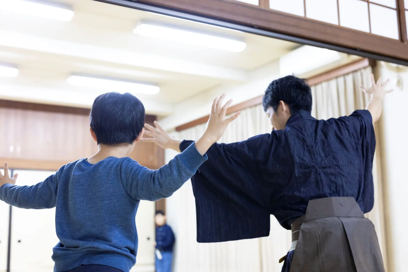 お稽古と発表会を支える先生方② 稽古場~宝生能楽堂 2020.05.01 コラム 能楽は、梅若能楽学院会館でのお稽古でした。 広い和室や、本物の能舞台を使って。 声の出し方、からだの動き。 申合せ(リハーサル)と本番では、装束のお針子仕事も! 子供一人ずつに着付けをして下さるのも先生方。 竹竿で揚幕の上げ下げ、切戸口の開け閉めも。 時にきびしい指導もありましたが、発表会を終えた子供たちの嬉しそうな顔に先生方もニコニコでした。 撮影:菅原康太