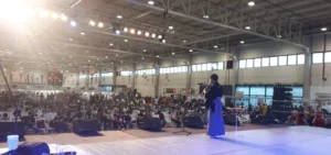 非言語コミュニケーションは、時に言語コミュニケーションを遥かに凌ぎます。写真のブラジル・クリチバのアリーナでの独演会では、日系のお客様が多かったこともありますが、日本の歌謡曲を奏でた時の会場のどよめきと一体感が忘れられない思い出となっています。尺八の独奏で奏でられるのは単旋律に限られ、歌詞の力も借りられませんが、日本の文化に根差した音そのものの可能性を再発見する契機になりました。