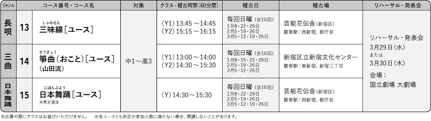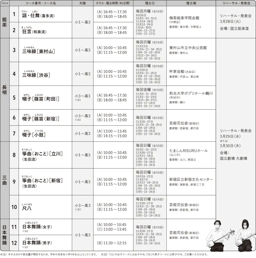 令和4年度「キッズ伝統芸能体験」開催スケジュール