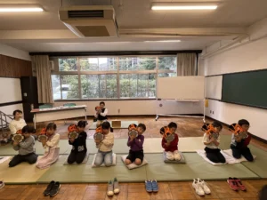 正座をして、綺麗な姿勢で先生とご挨拶の練習から始まります。