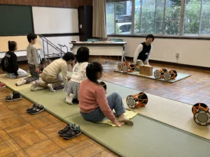 良い音を出すコツを教えてもらい、掛け声も忘れずに。