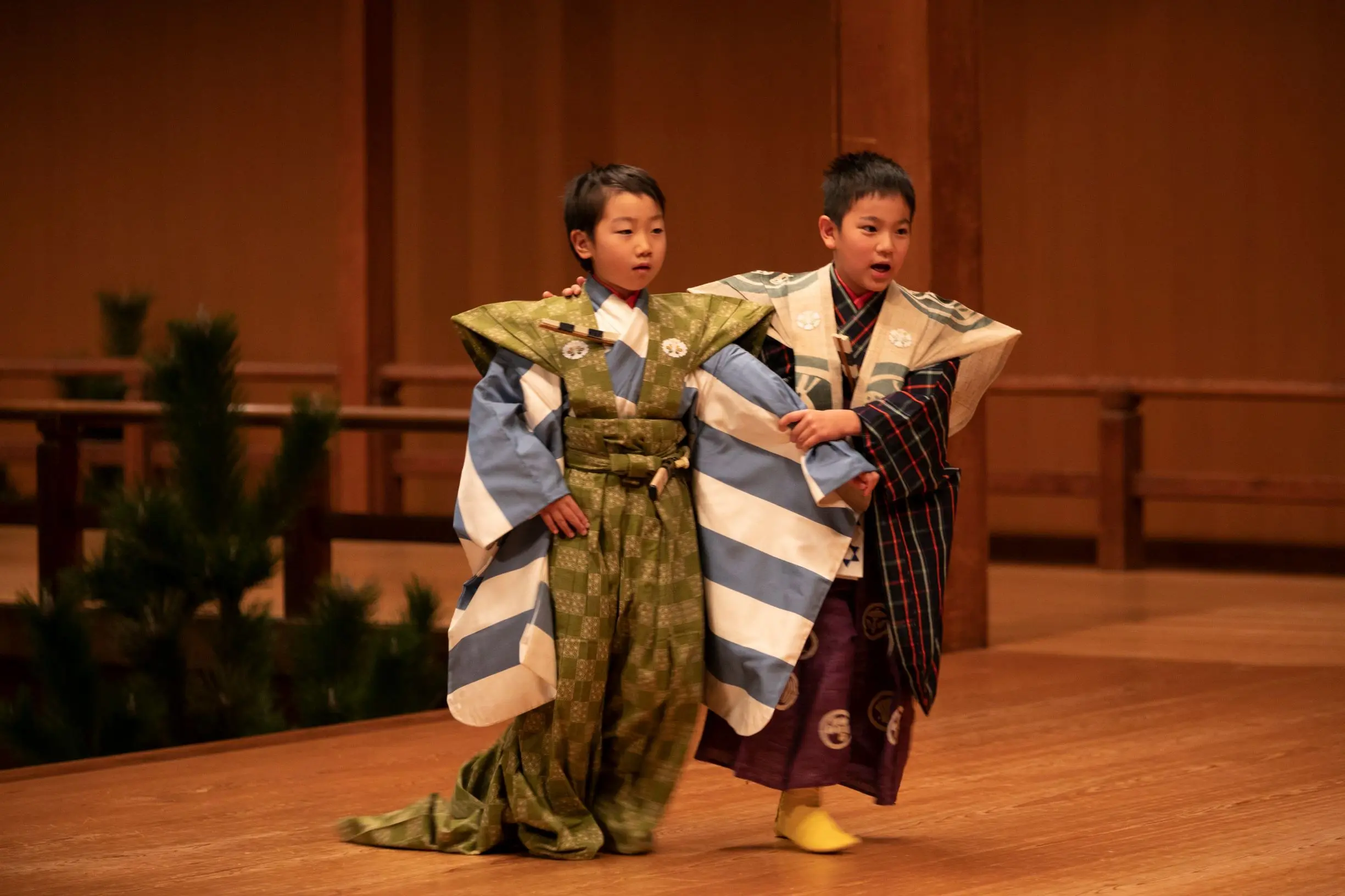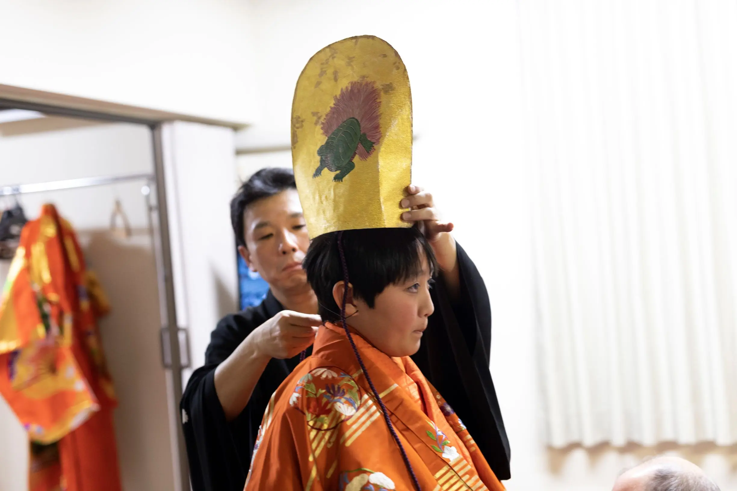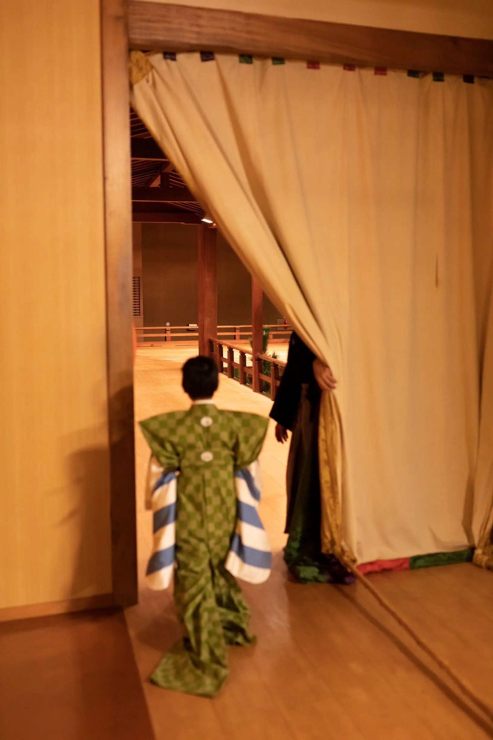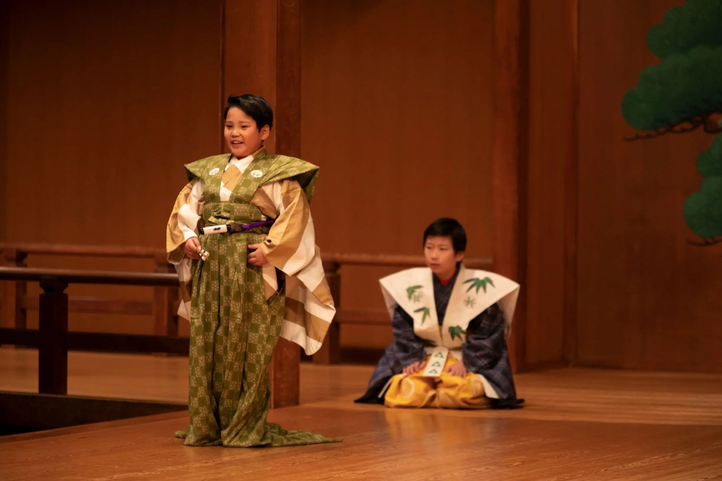 狂言コースは本物の装束をつけて舞台に立つという点で