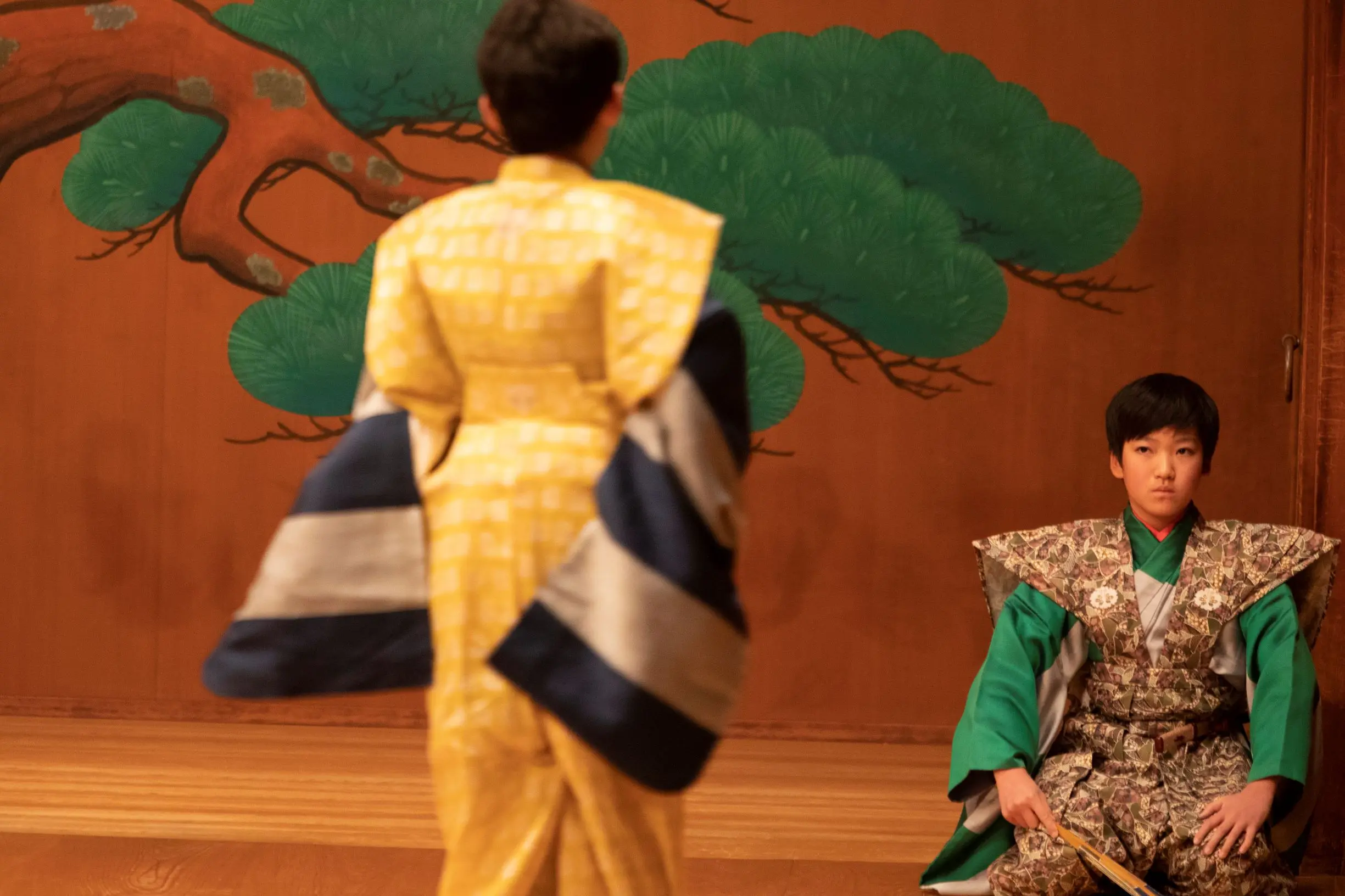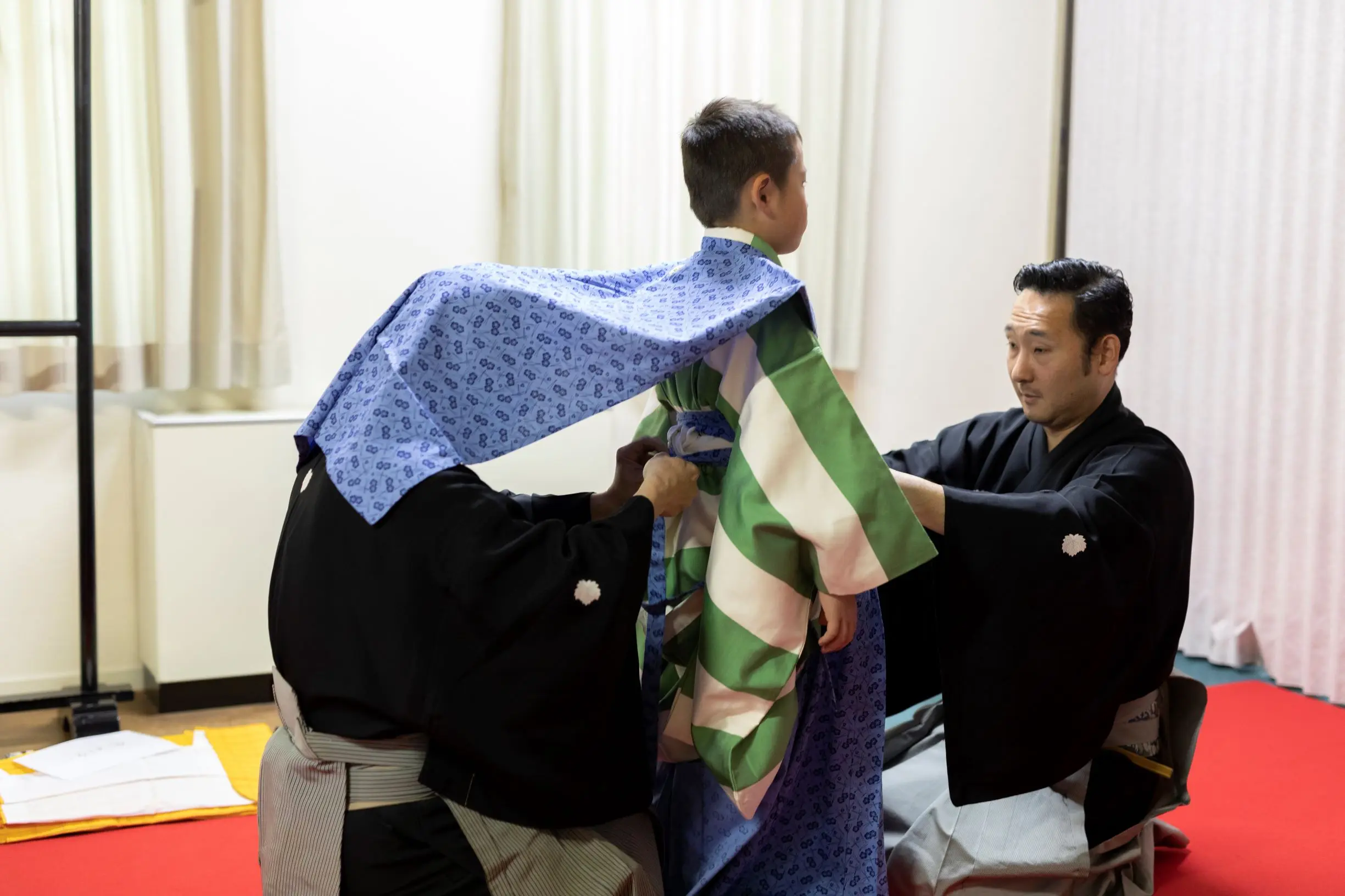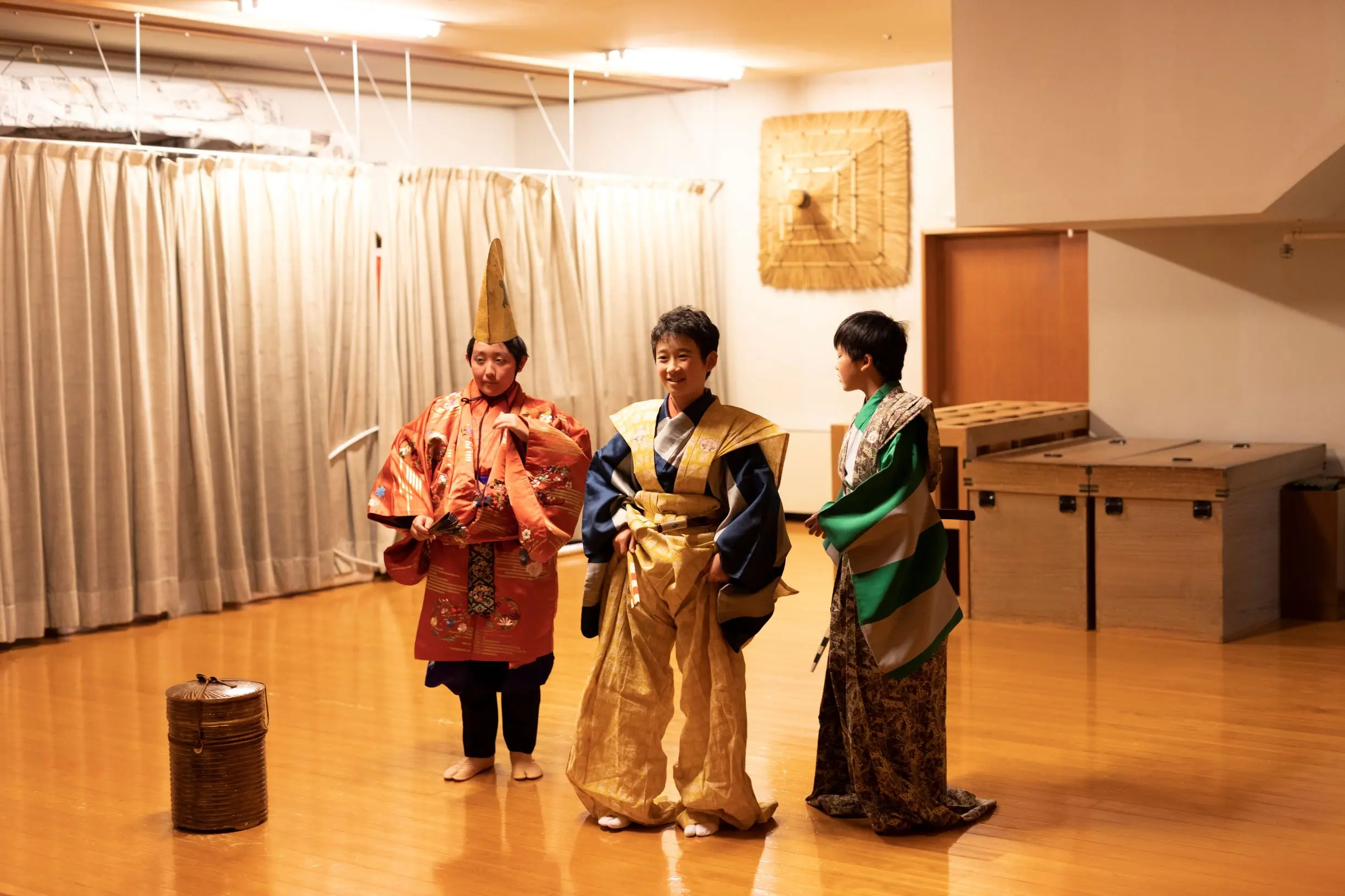 狂言コースは本物の装束をつけて舞台に立つという点で