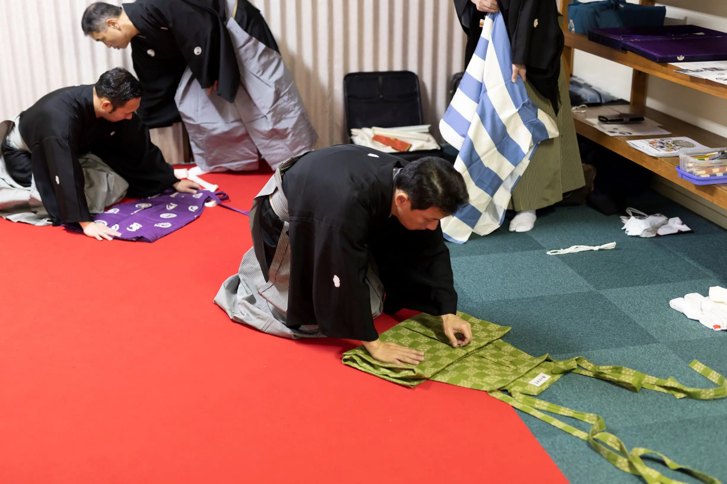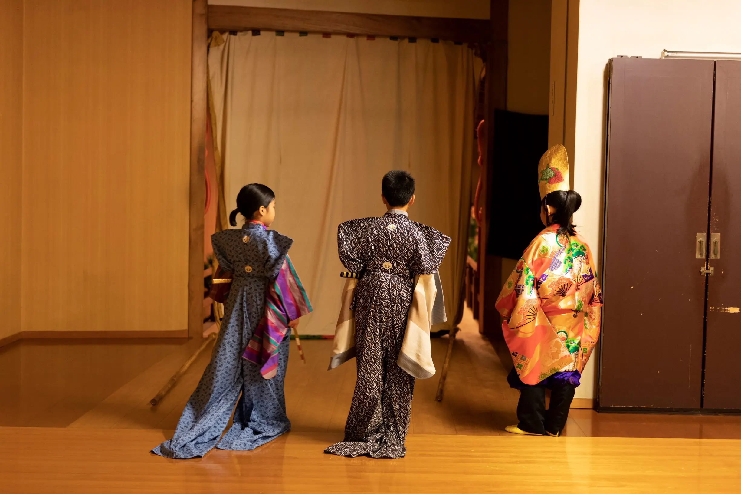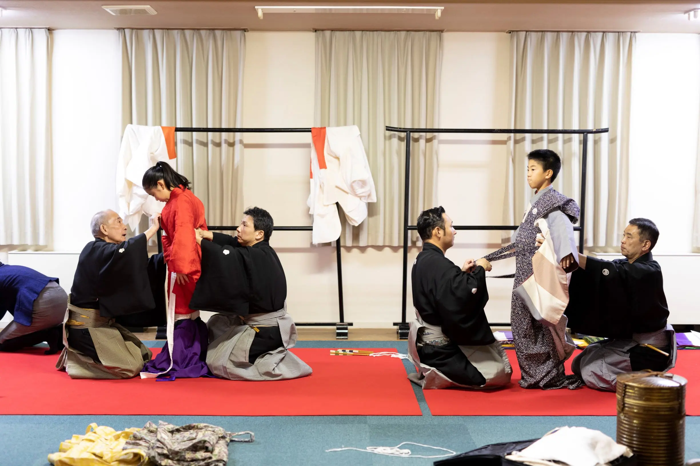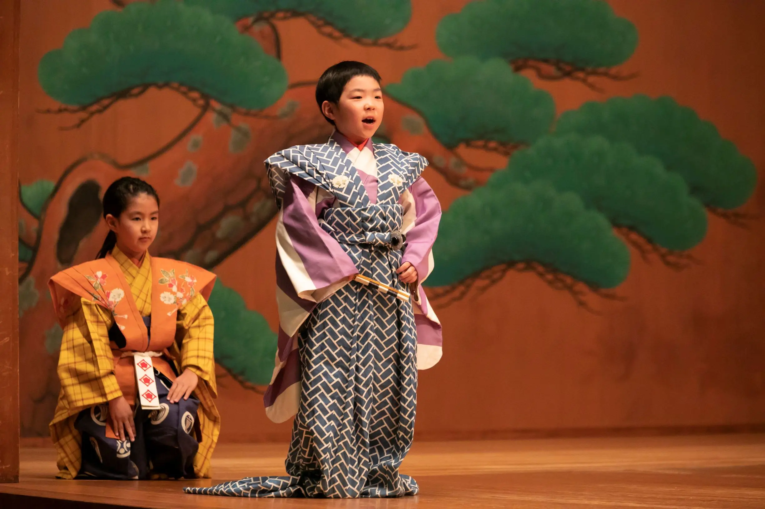 狂言コースは本物の装束をつけて舞台に立つという点で