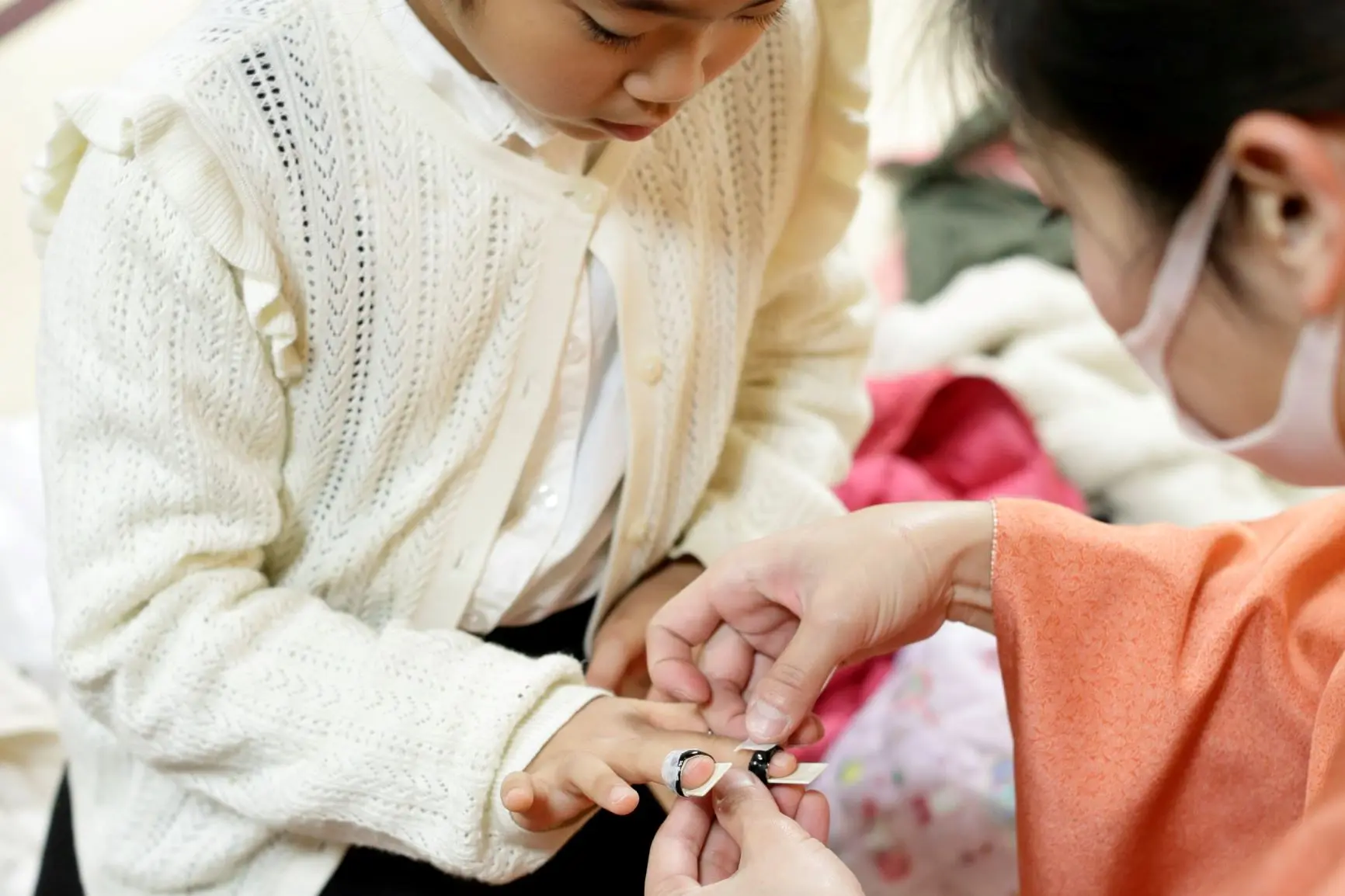 発表会のウラとオモテ ~箏曲(生田流) 2020.01.31 レポート 今回は「箏曲(生田流)」の写真から。 リハーサルは12月21日、 発表会は翌22日に国立劇場 小劇場で行われました。 発表会当日、楽屋では・・・ サージカルテープを持つ先生。なにが始まるのかな? ぺたり。テープで箏爪をしっかり固定しています。 本番でがんばって弾いて、爪が飛んでいってしまっては大変。 “スクイ”や“合セ爪”という演奏法も、爪が外れやすいのです。 先生方の優しい思いで準備万端!まもなく本番です。 【箏曲(生田流)の発表会アルバム】 リハーサルと本番より 撮影:武藤奈緒美 8(撮影:武藤奈緒美) Prev 1of28 Next