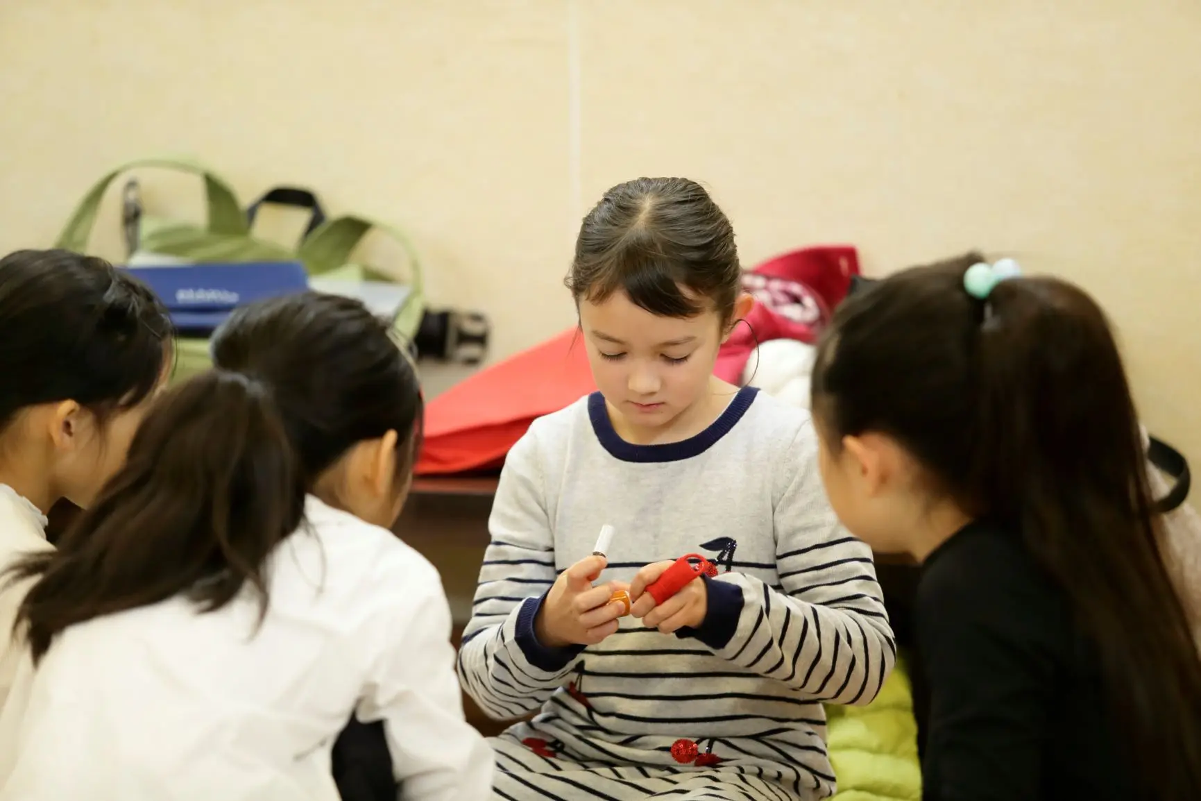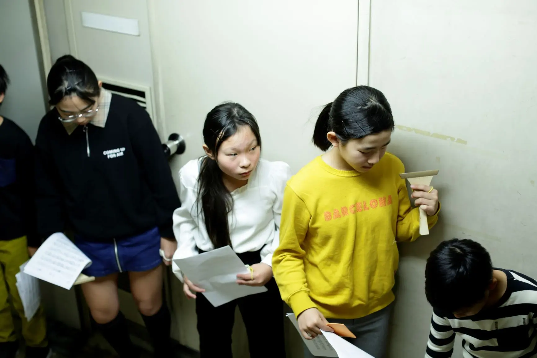 そして発表会当日の楽屋、最後の練習に余念がありません。