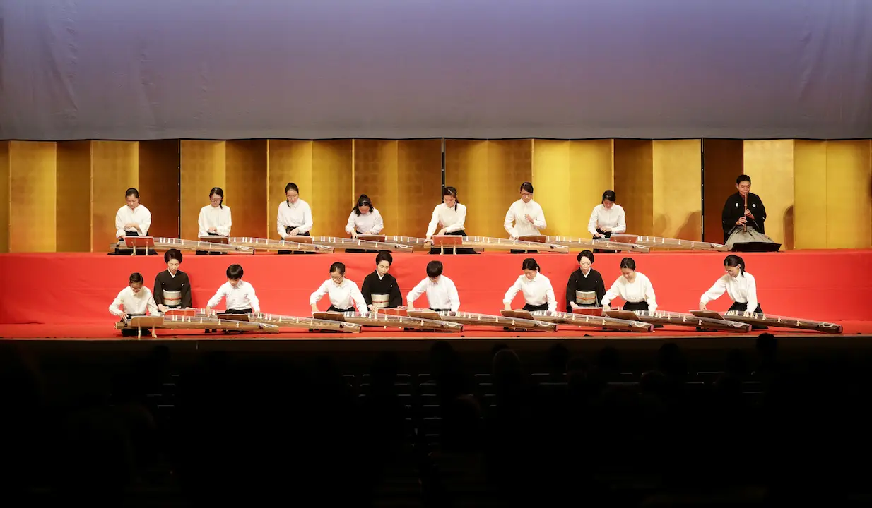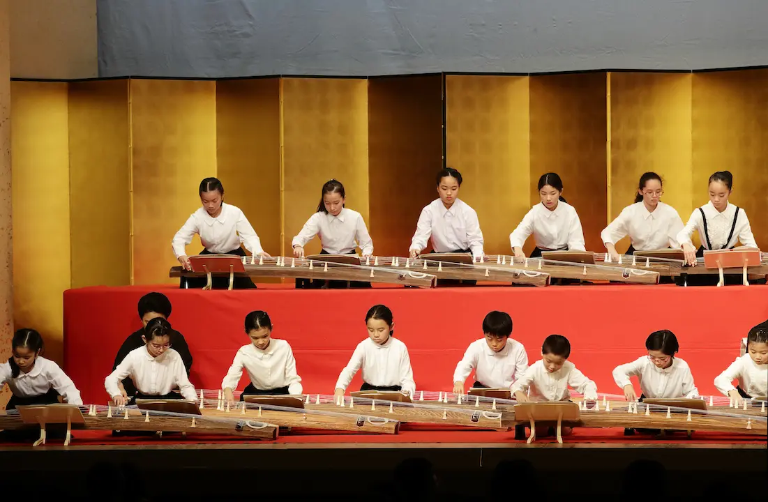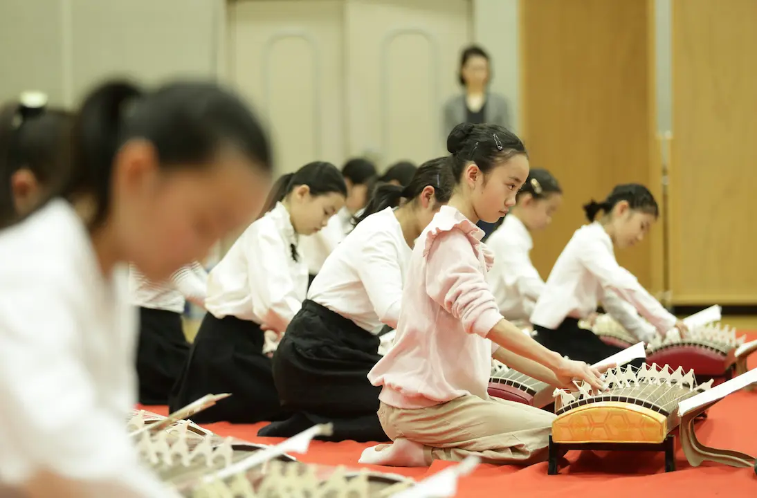 発表会のウラとオモテ ~箏曲(山田流) 2020.03.23 レポート 「箏曲(山田流)」の写真です。 リハーサルは12月21日、 発表会は翌22日に国立劇場 小劇場で行われました。 リハーサル室での様子です。 緋毛氈の上にきれいに並んだ33面の箏。 山田流と生田流とでおことの並べ方が違うんだって。 後列の子供たちは、本番では80㎝余りの高さの壇の上で演奏します。 ピリっと、緊張。背筋も伸びます。 あれ?この音ちょっと違うみたい。大丈夫かなぁ。 ううんと・・・、これでよし! 明日の本番も、うまくいきそう。 発表会本番の様子は、アルバムでご覧ください! 【箏曲(山田流)の発表会アルバム】 リハーサルと本番より 撮影:武藤奈緒美 Prev 1of25 Next