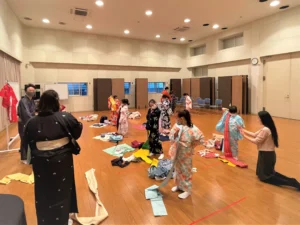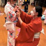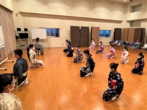 初日は、浴衣(ゆかた)の着付けを教わりました。