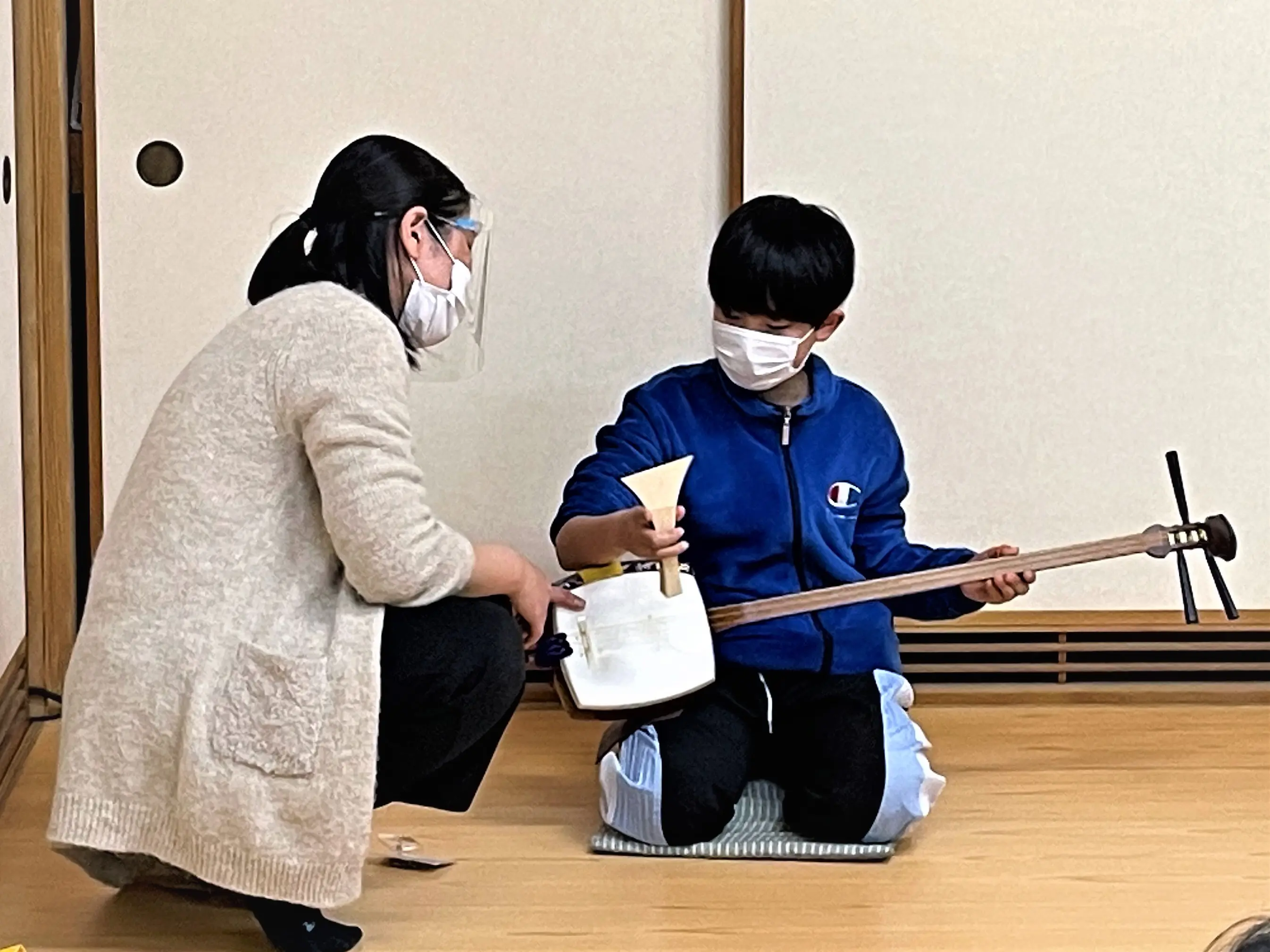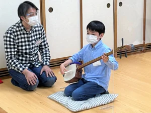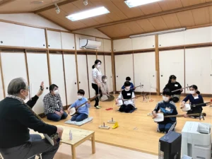 楽器やバチの持ち方、手首の使い方、姿勢や構えを真剣に教わります。