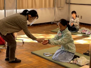 お稽古の始まりと終わりのご挨拶は当番制。「よろしくお願いいたします」「ありがとうございました」とひとりずつ声を出します。