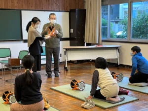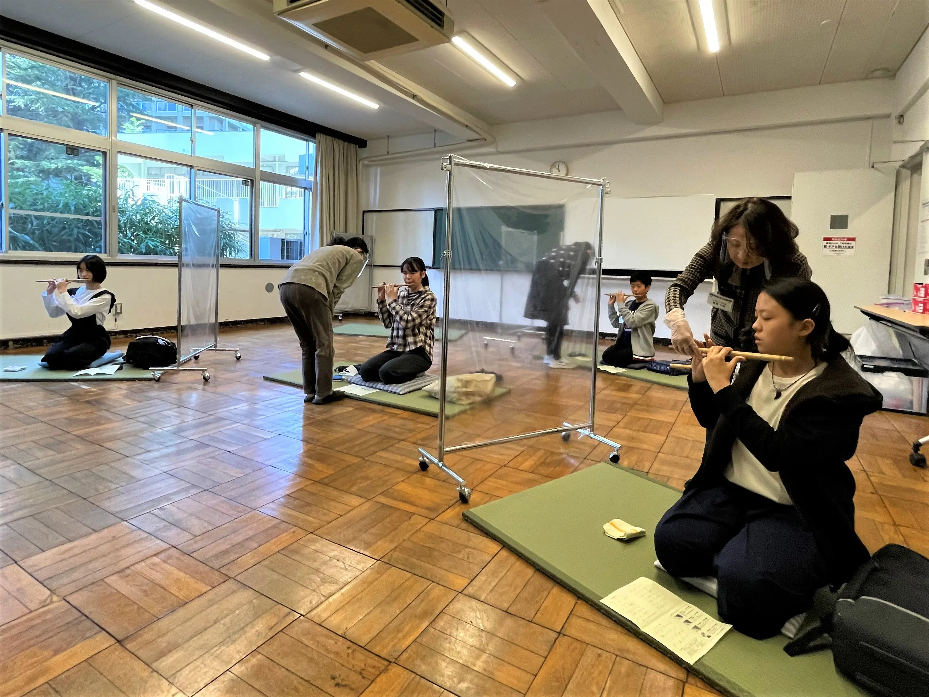 11月28日、芸能花伝舎では長唄囃子「篠笛」と「小鼓」の2コースもお稽古が始まりました。