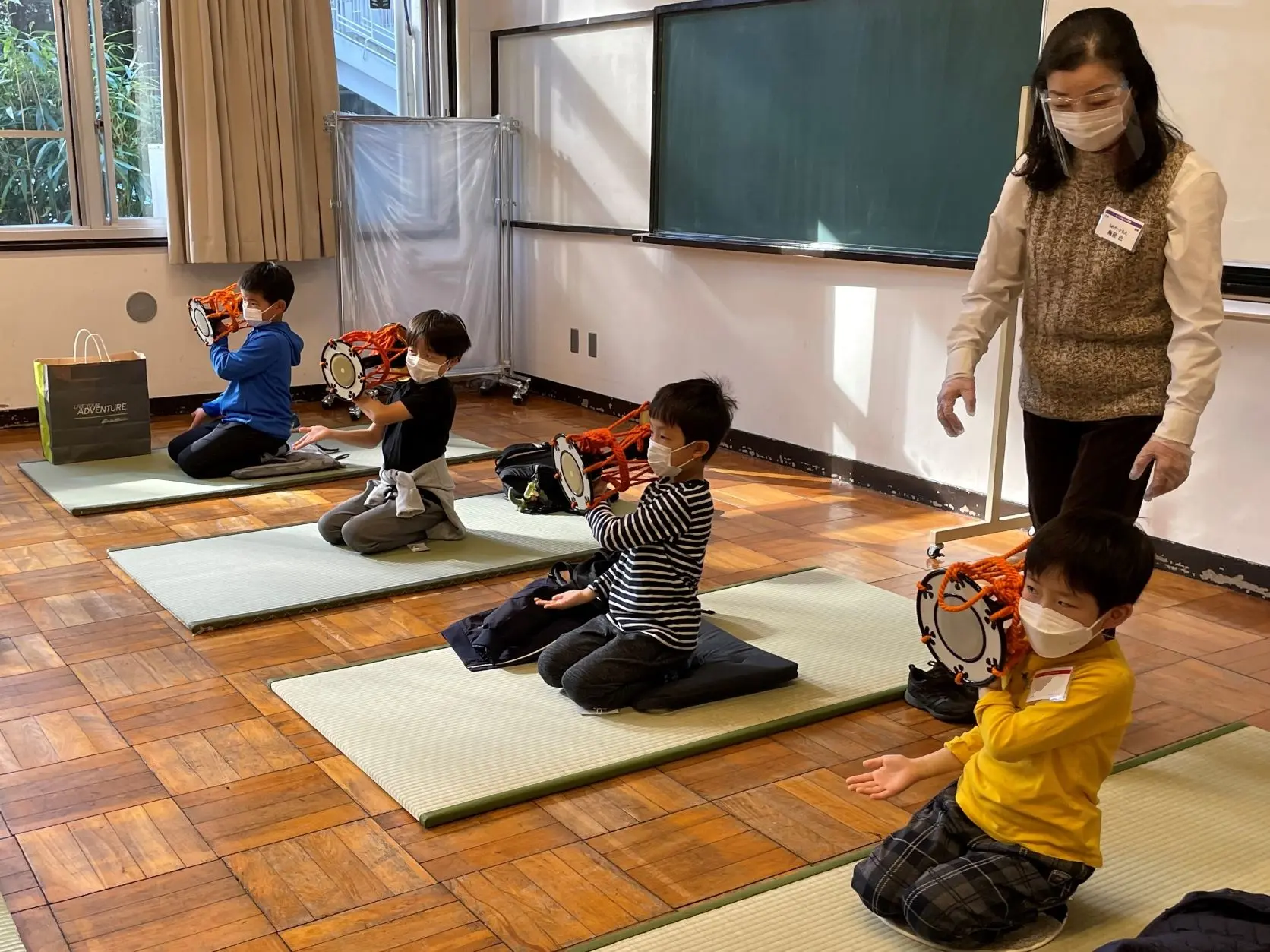 午後になると、同じ教室で小鼓コースのお稽古です。