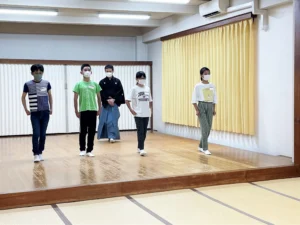 狂言のお稽古では、2~3名で組になり、ひとつのセリフ劇を学びます。