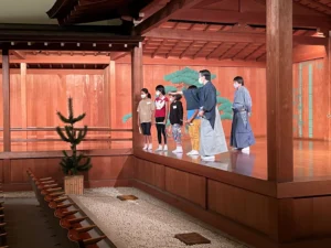 「実は、みなさんが梅なんです。能のかたちをつくった世阿弥(ぜあみ)が書いた『花伝書(かでんしょ)』という本のなかで、能の芸を花にたとえて“能は花をお客様に見せること”と伝えています」