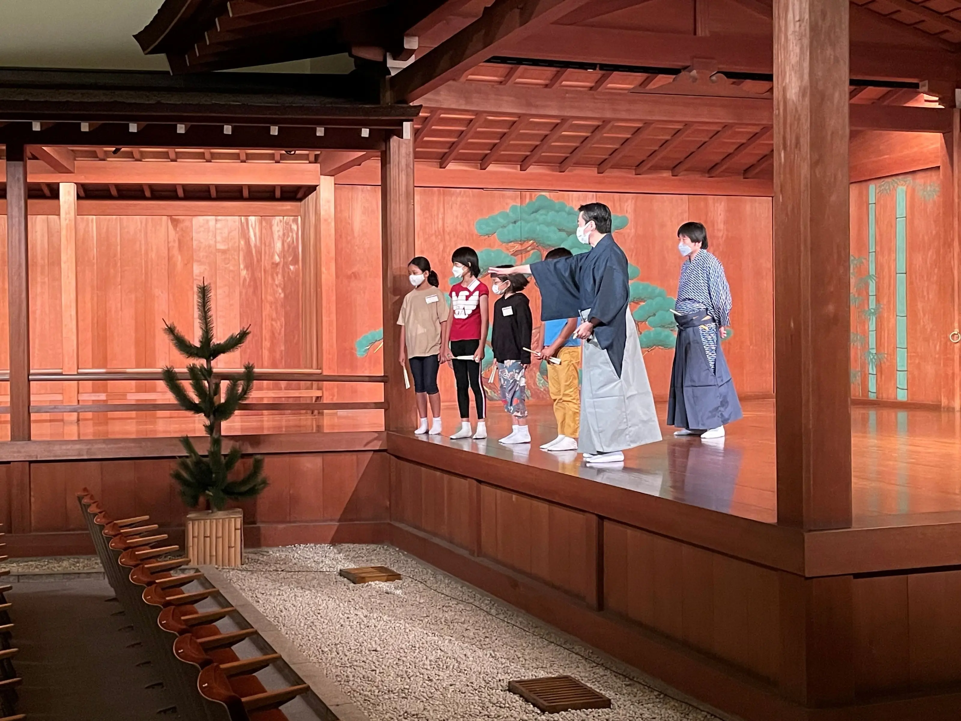 「時代で言うと室町時代。人々が着物を着て、刀を腰に差して、ちょんまげなんかを結っていたころ。狂言は、いまも700年前と同じかたちで演じられ、このようなものは世界中を見てもなかなかありません。ですから、狂言や能は無形文化遺産に登録されています。これから、みなさんは世界的な文化遺産に挑戦しますよ」