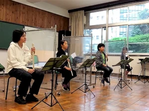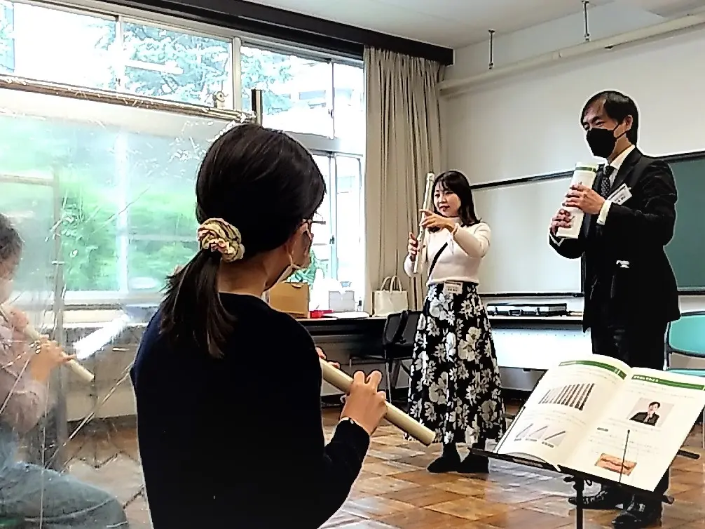 ひとりひとりの姿勢や口の形、角度を丁寧に見ながらアドバイスを続ける先生方。