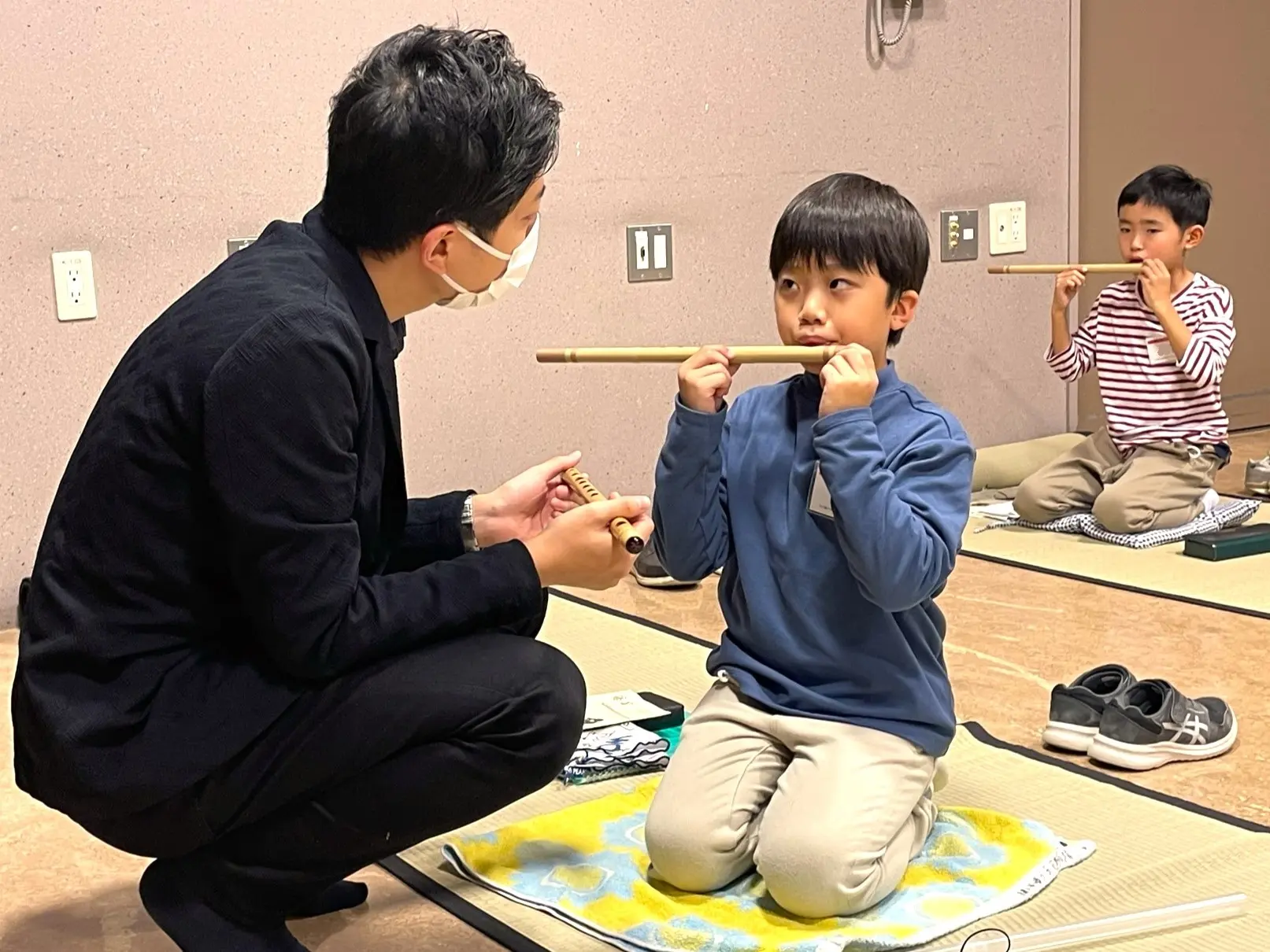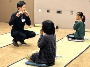 「篠笛には、コツがあります。でも、みんな、口のかたちも厚さも違うでしょう。ですから、そのコツは人それぞれなのです。自分の“鳴る位置”というものが必ずありますから、それをしっかりと探しましょう」