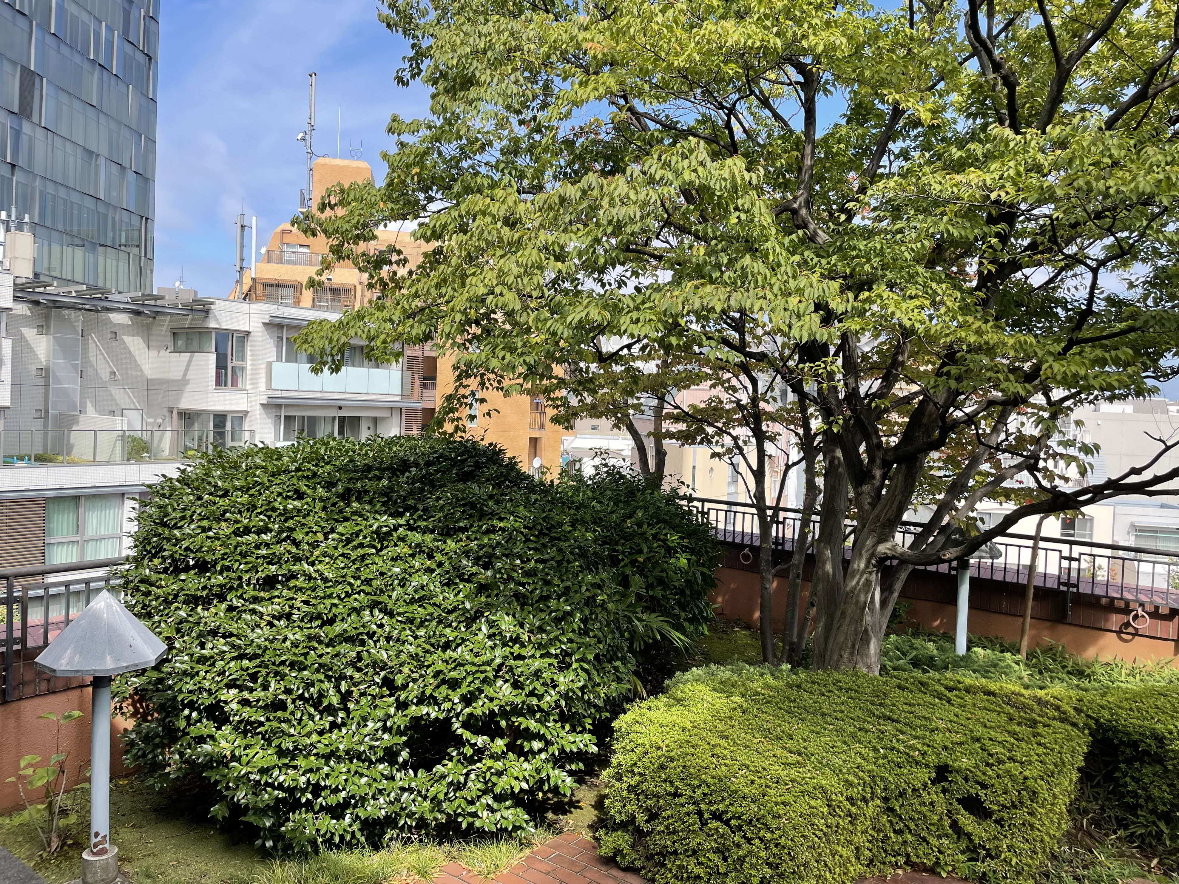 立川に続き、新宿区立新宿文化センターでの箏曲[新宿]コースのお稽古が始まりました。お稽古会場は4階ですが、障子の戸をあけると庭園の緑が目にとびこみます。
