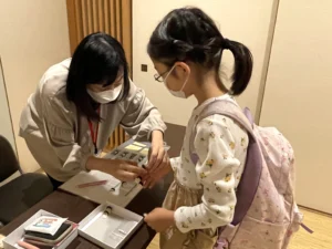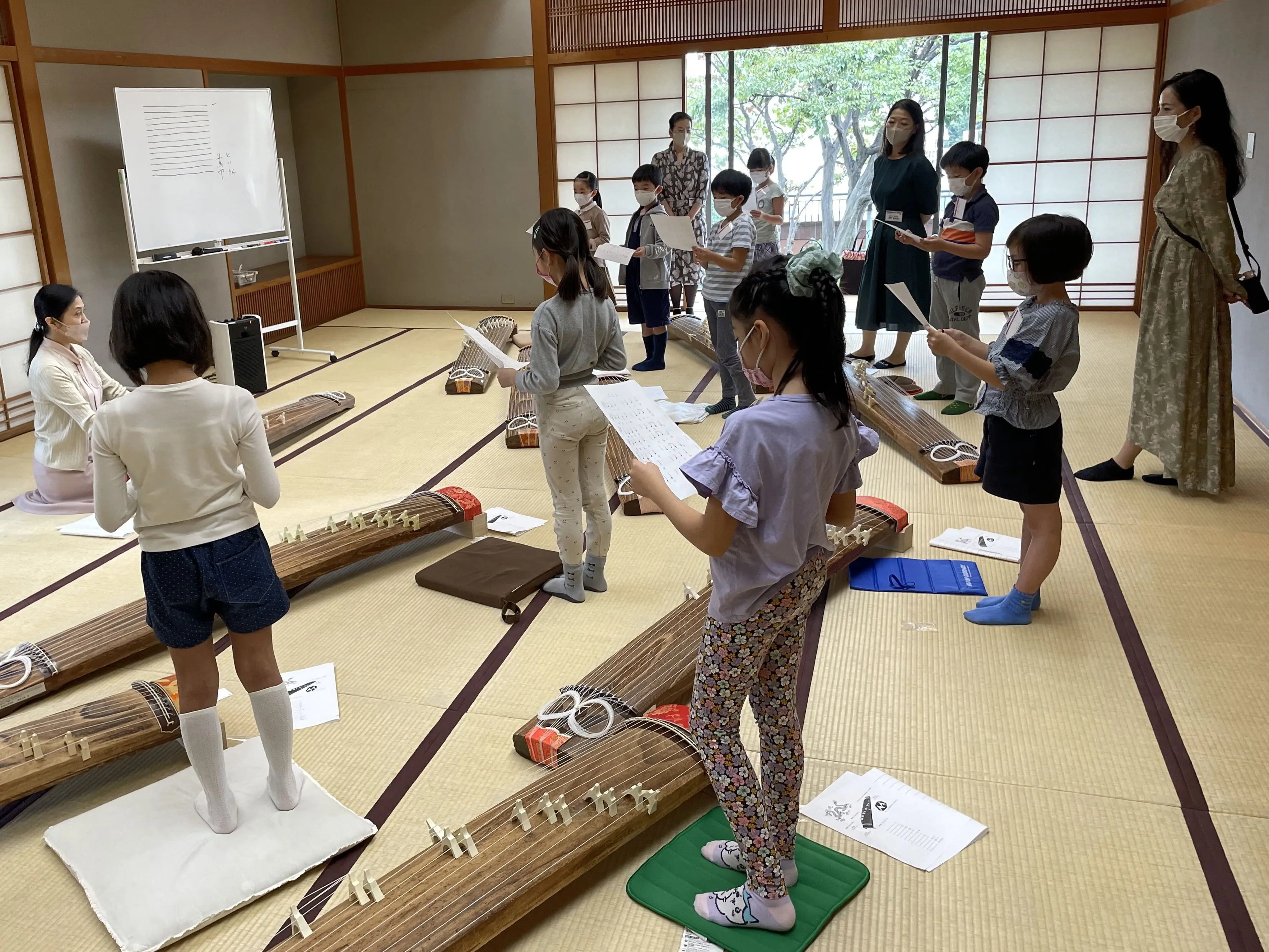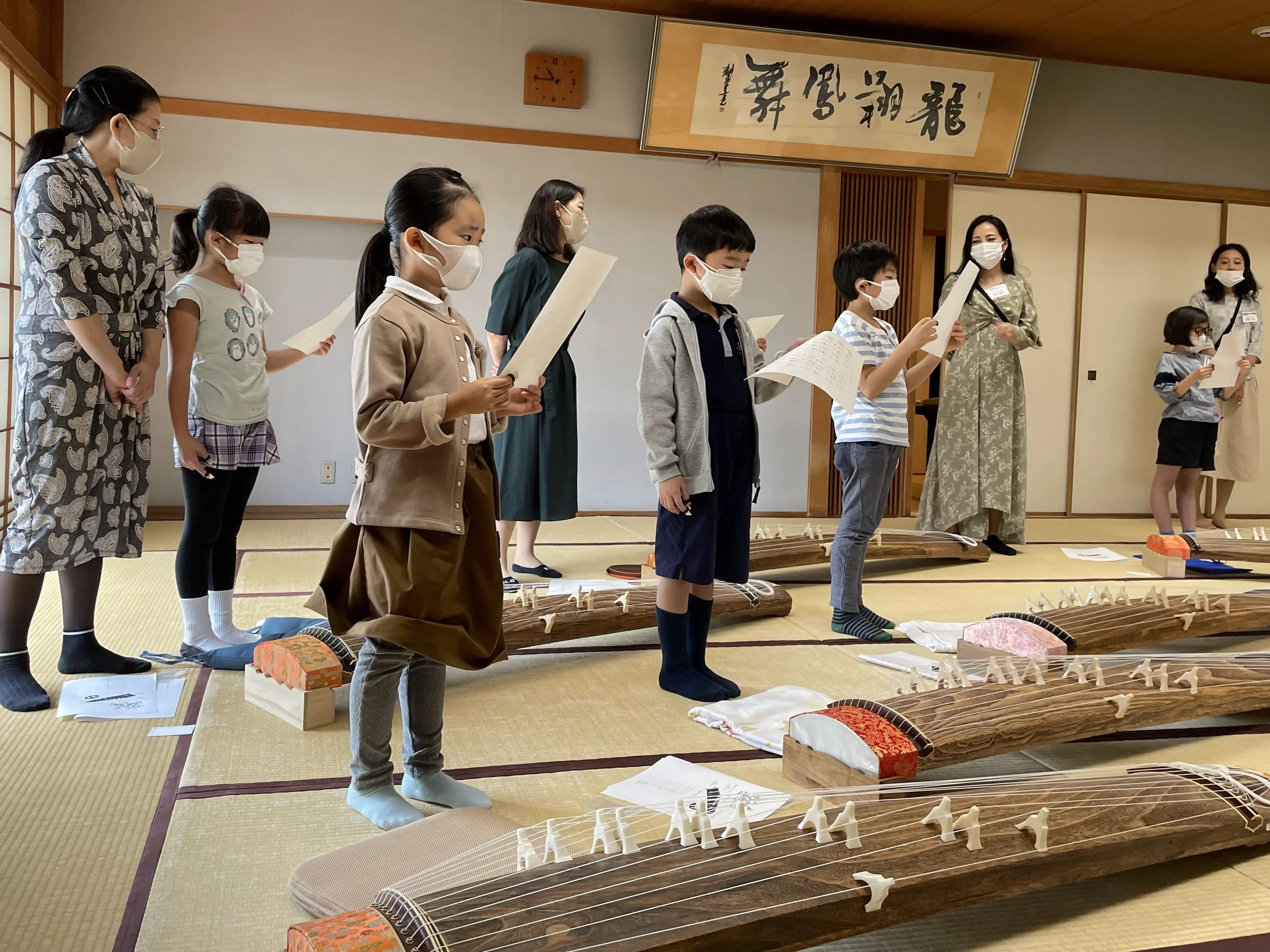 「お稽古のときは、楽譜を見ません。うたと指づかいはおうちで練習して覚えてきましょう。日本の伝統的な曲ですので、知らない人はおうちの方に聞いてみてくださいね」