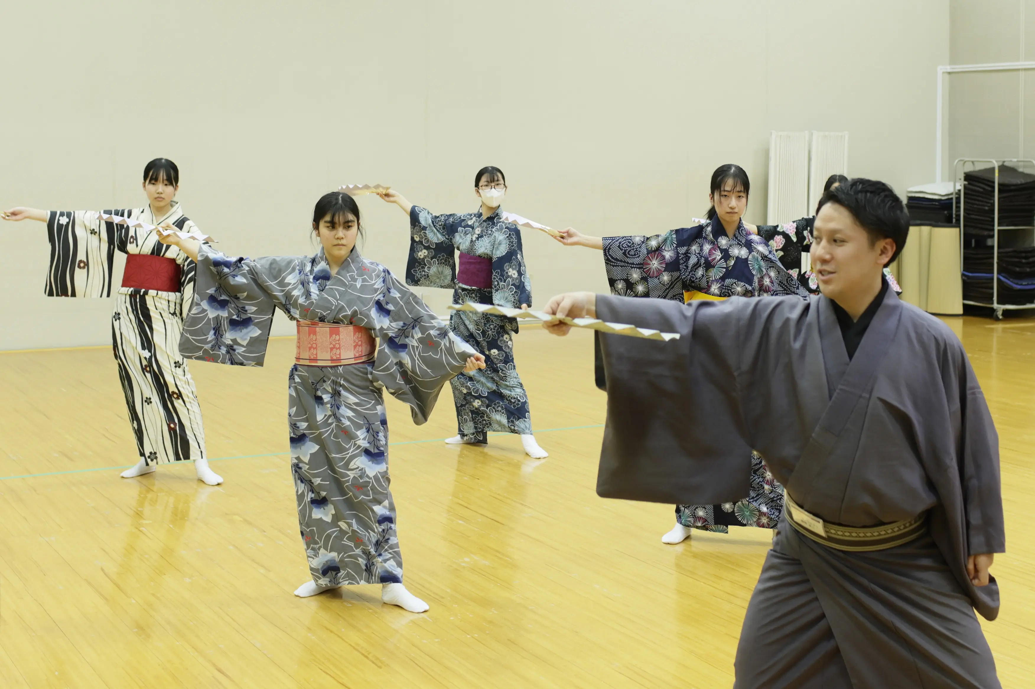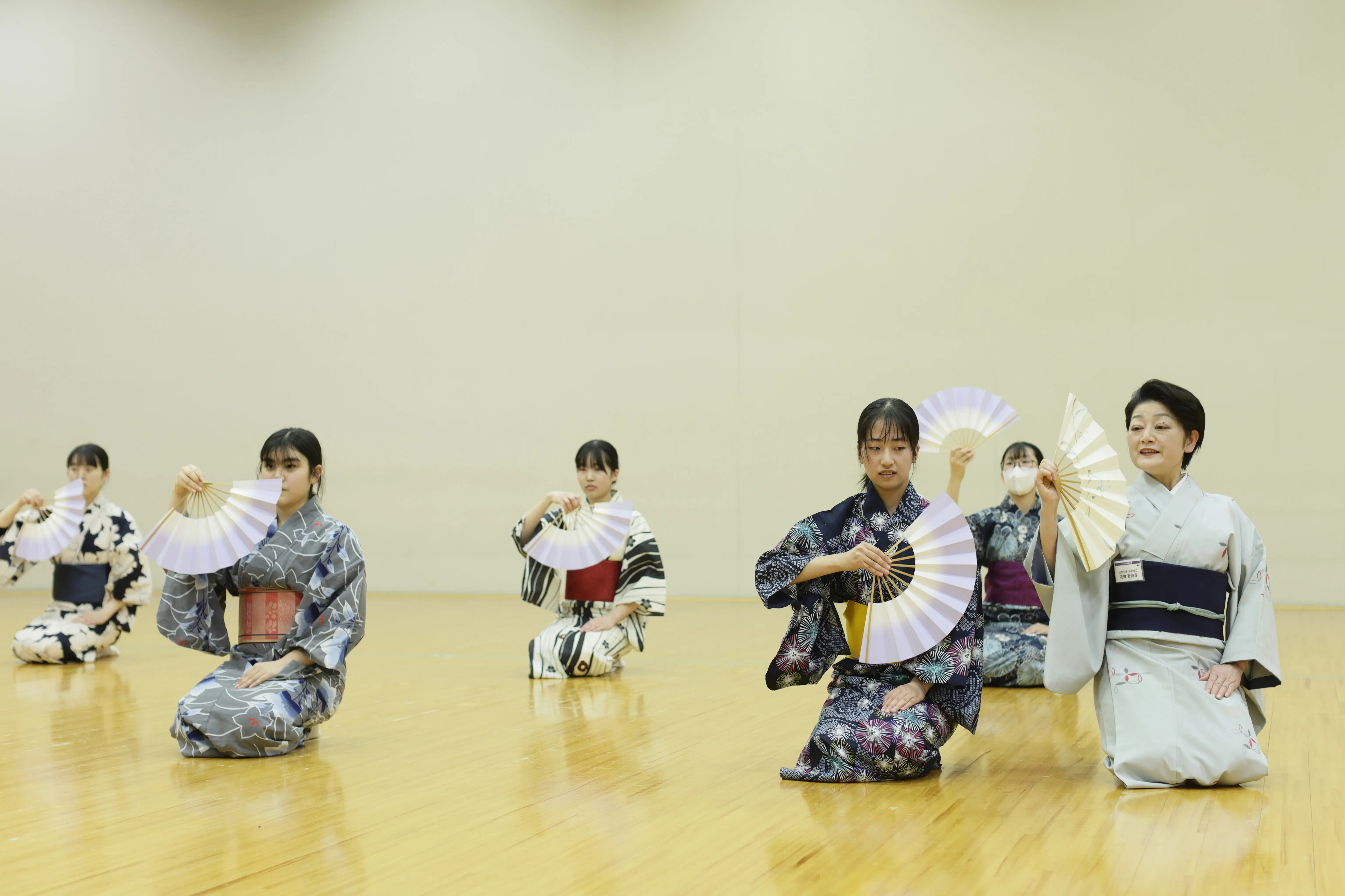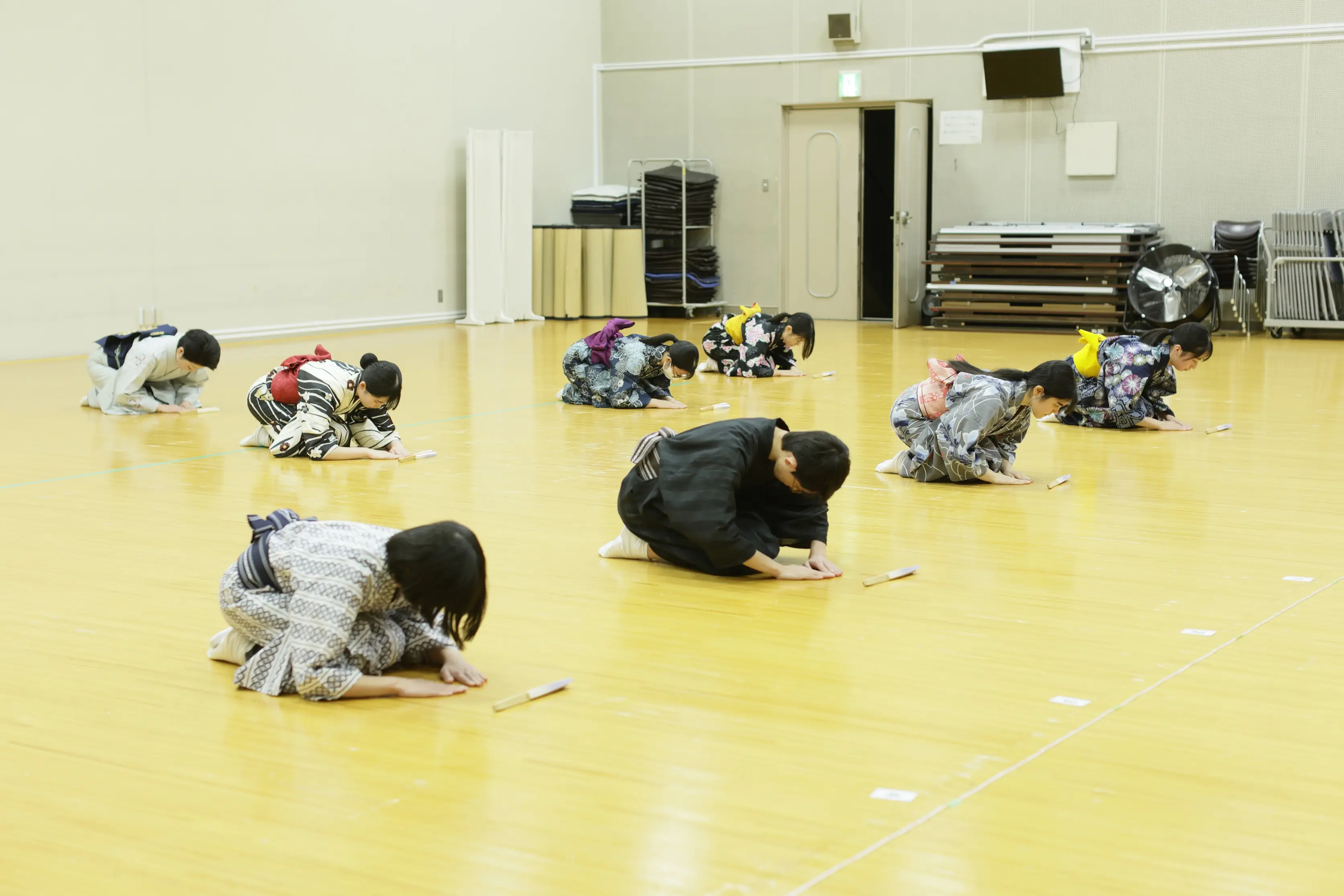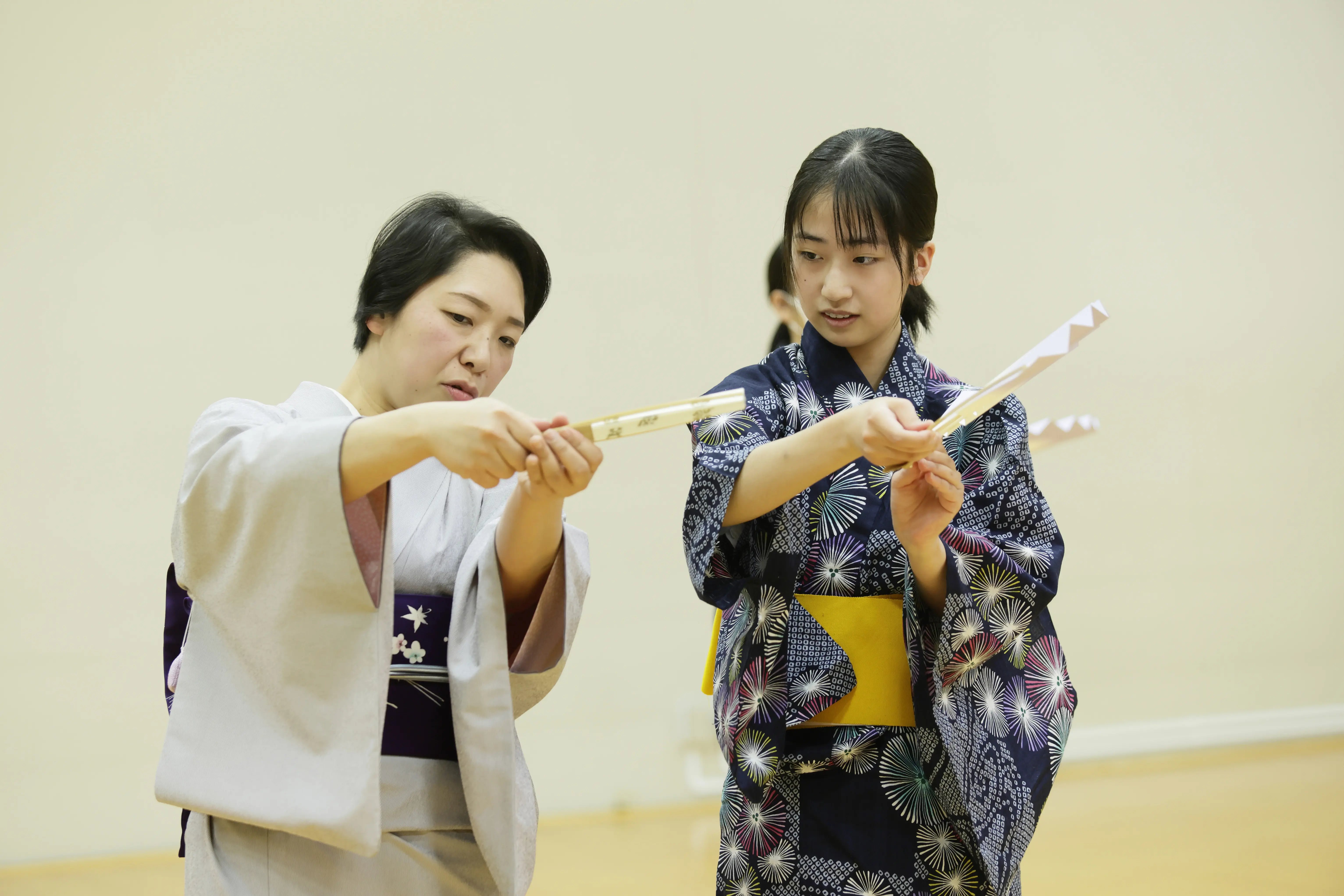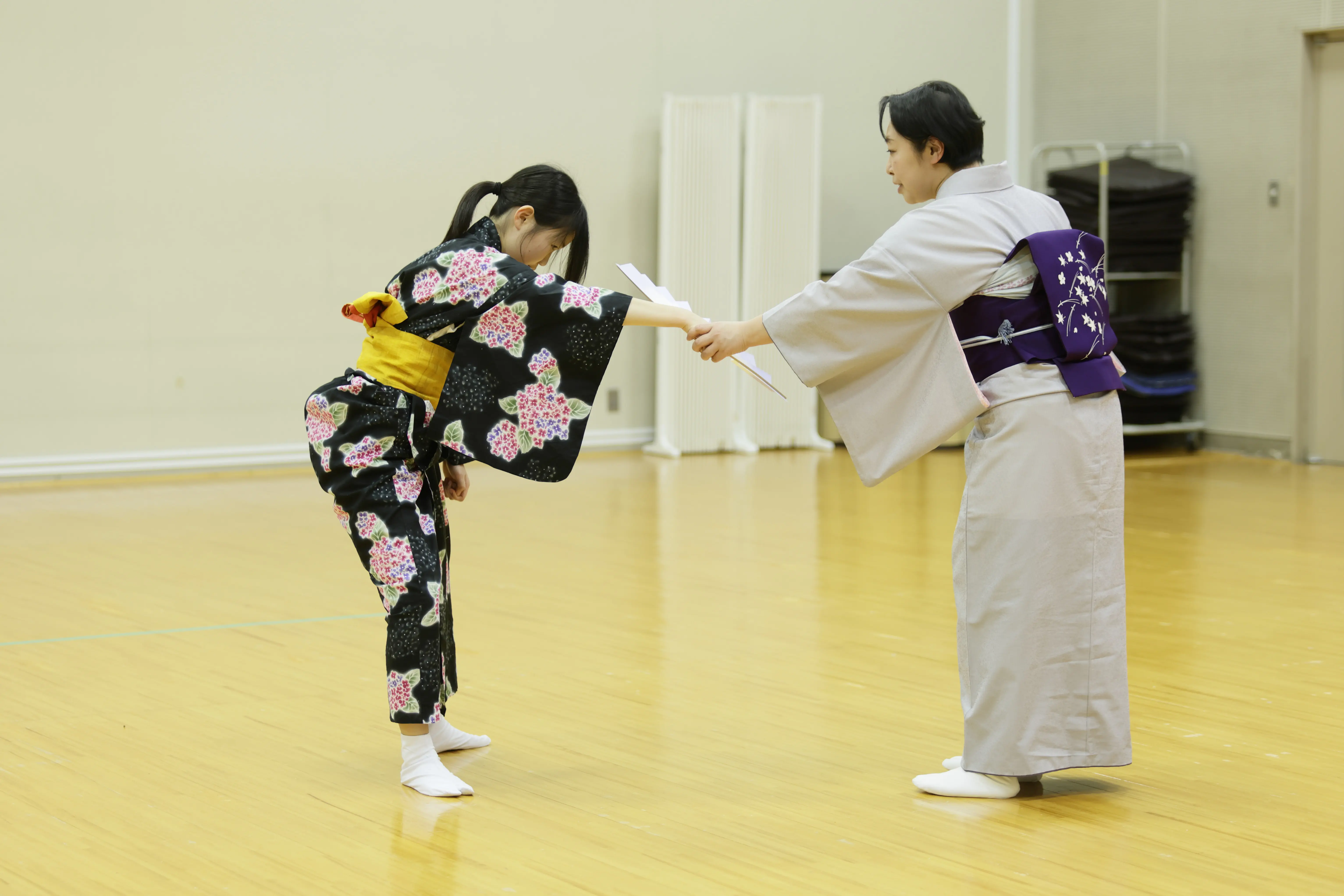 真剣な眼差しでひとつひとつの動きを丁寧に学ぶ姿からは、日本の伝統芸能を未来へ繋ぐ力を感じます。