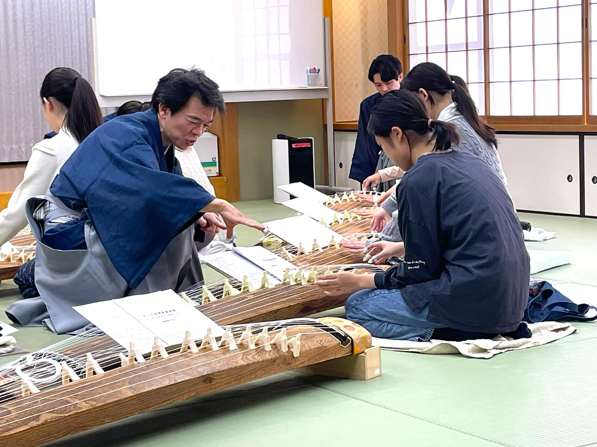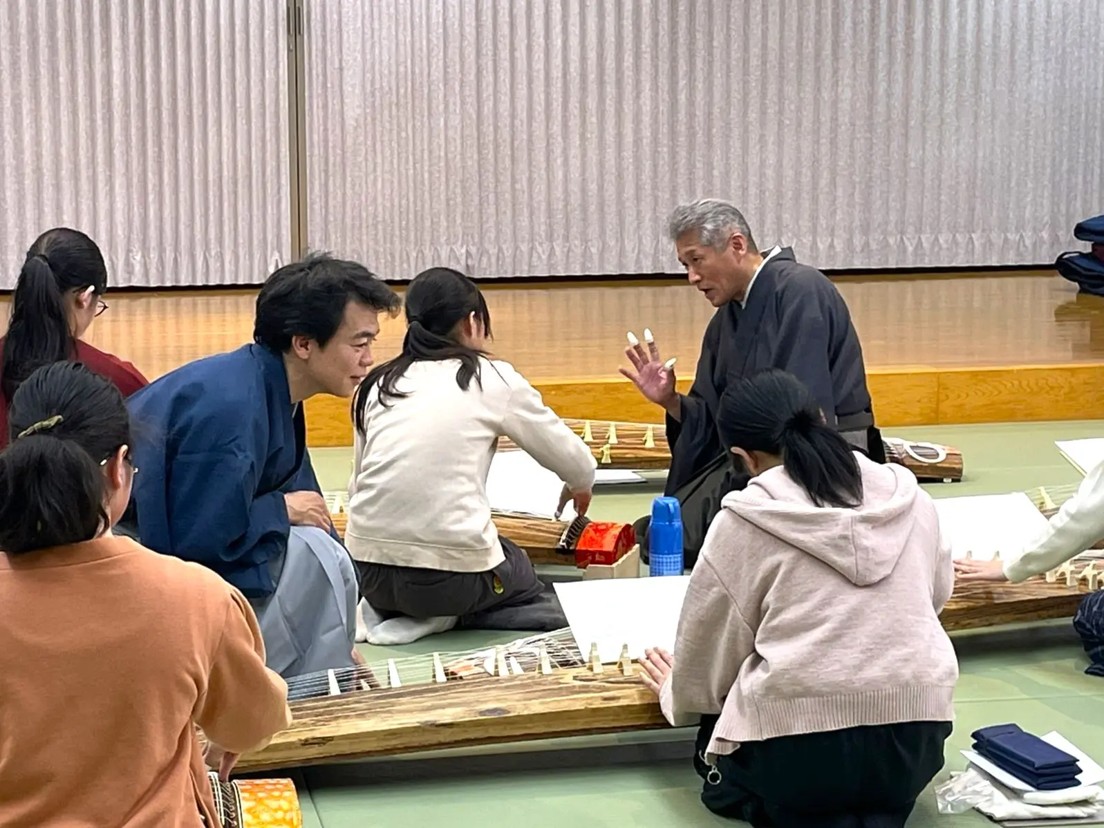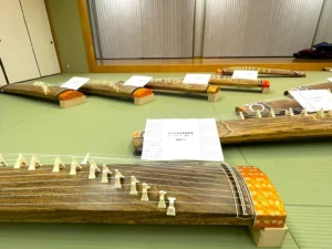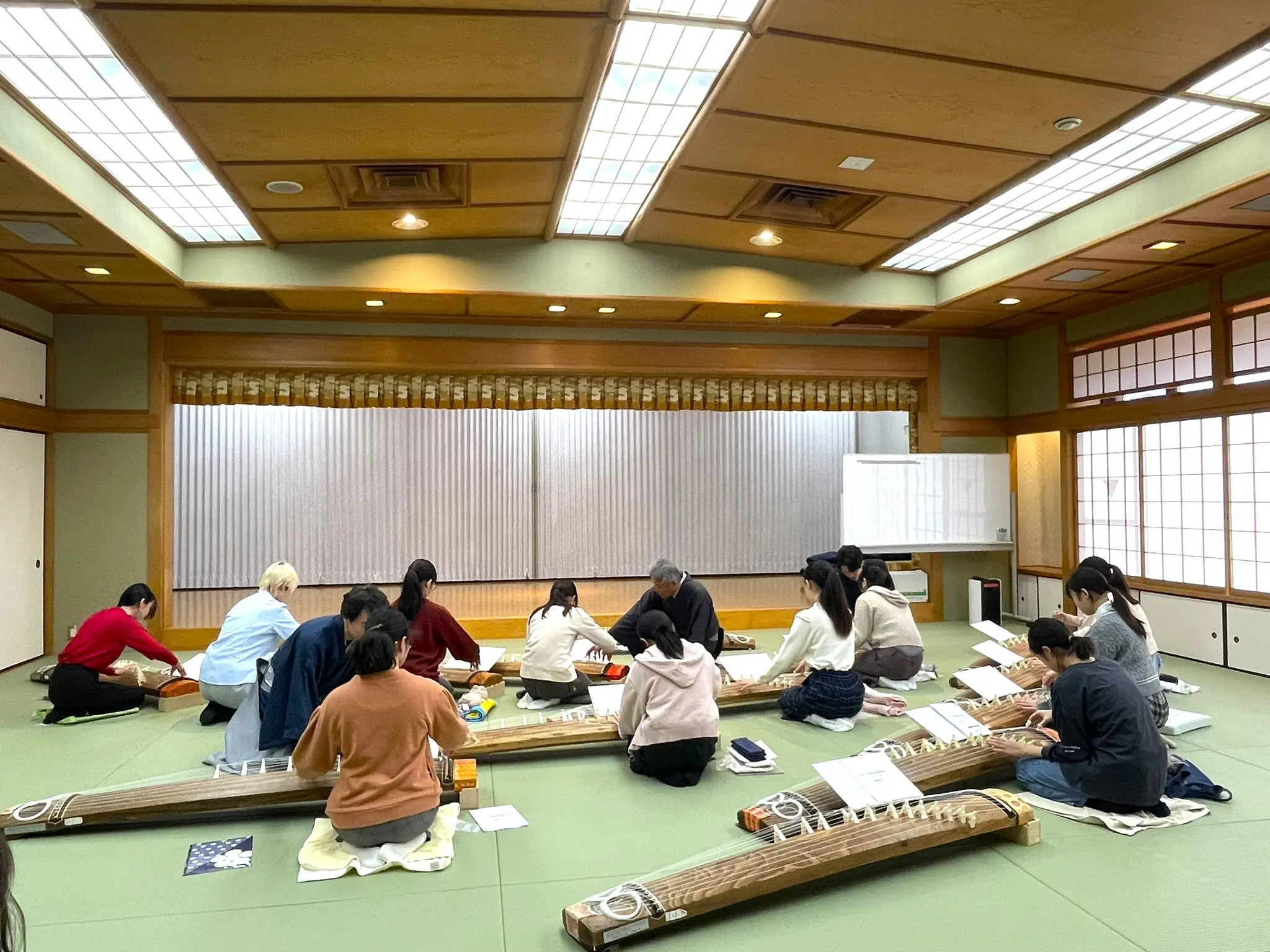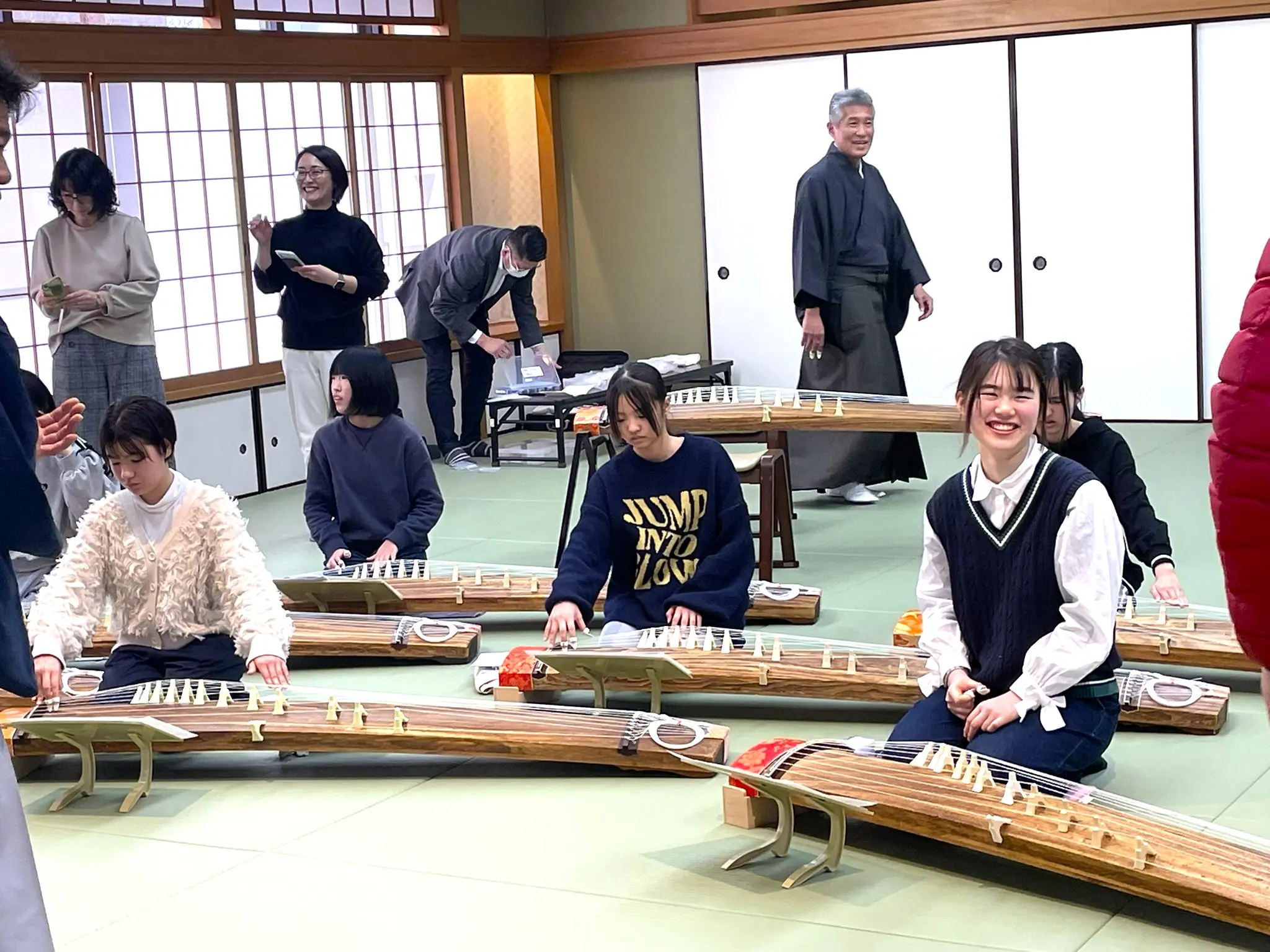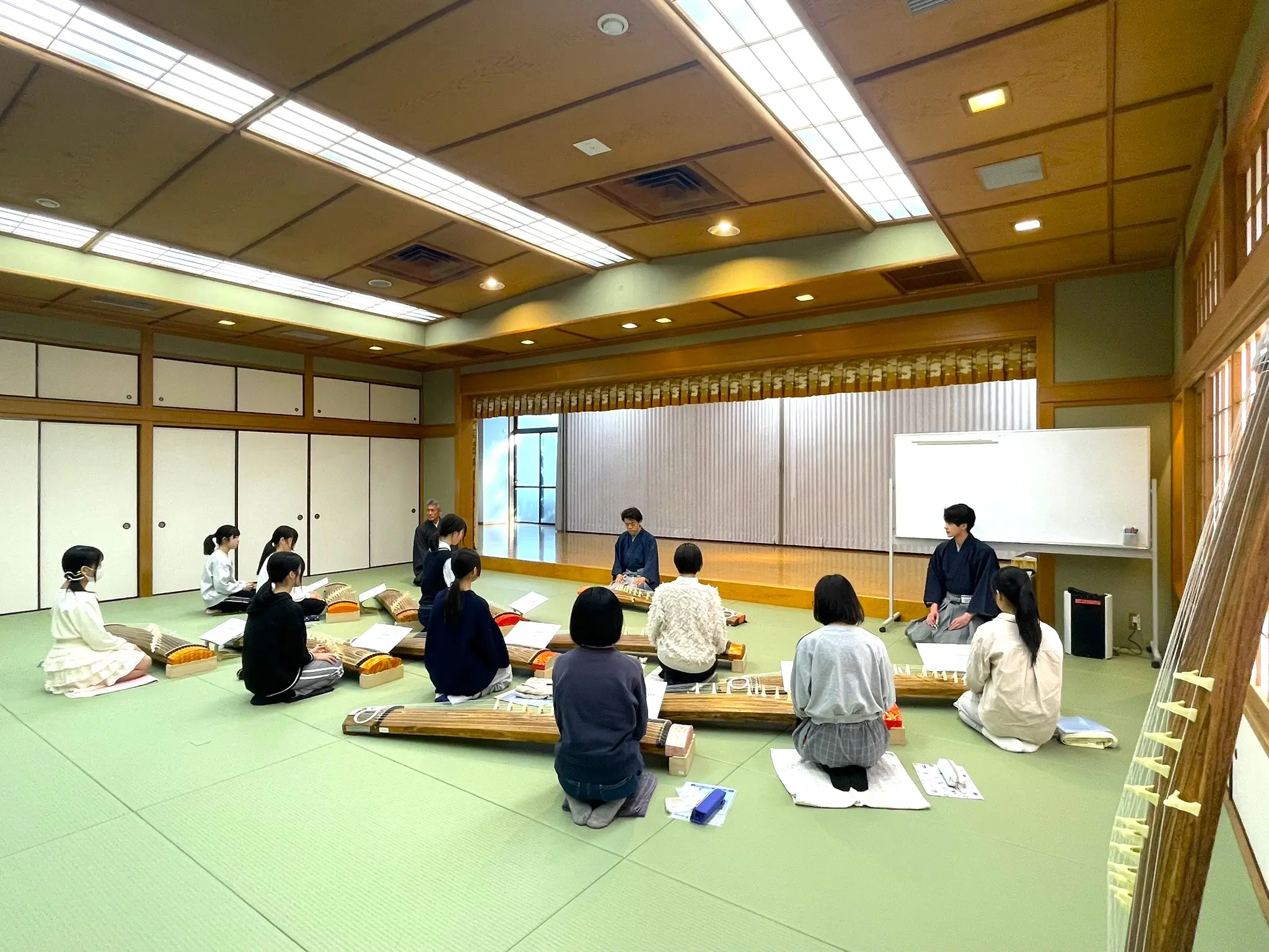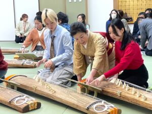 はじめにすべての糸を流れるように弾いてみます。シャララララーン、とよく耳にする美しいおことの音色です。皆さん、とてもうれしそうでした。
