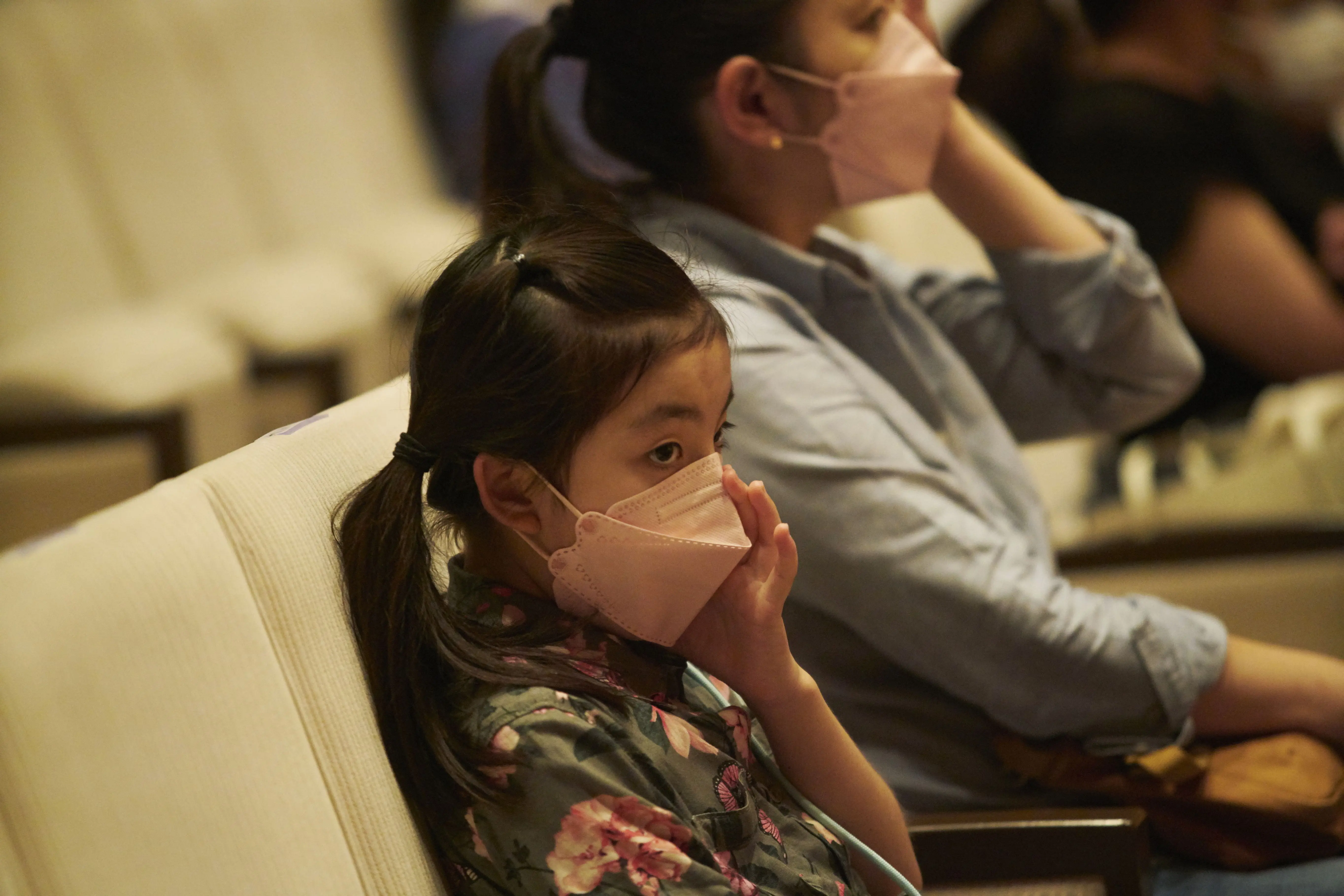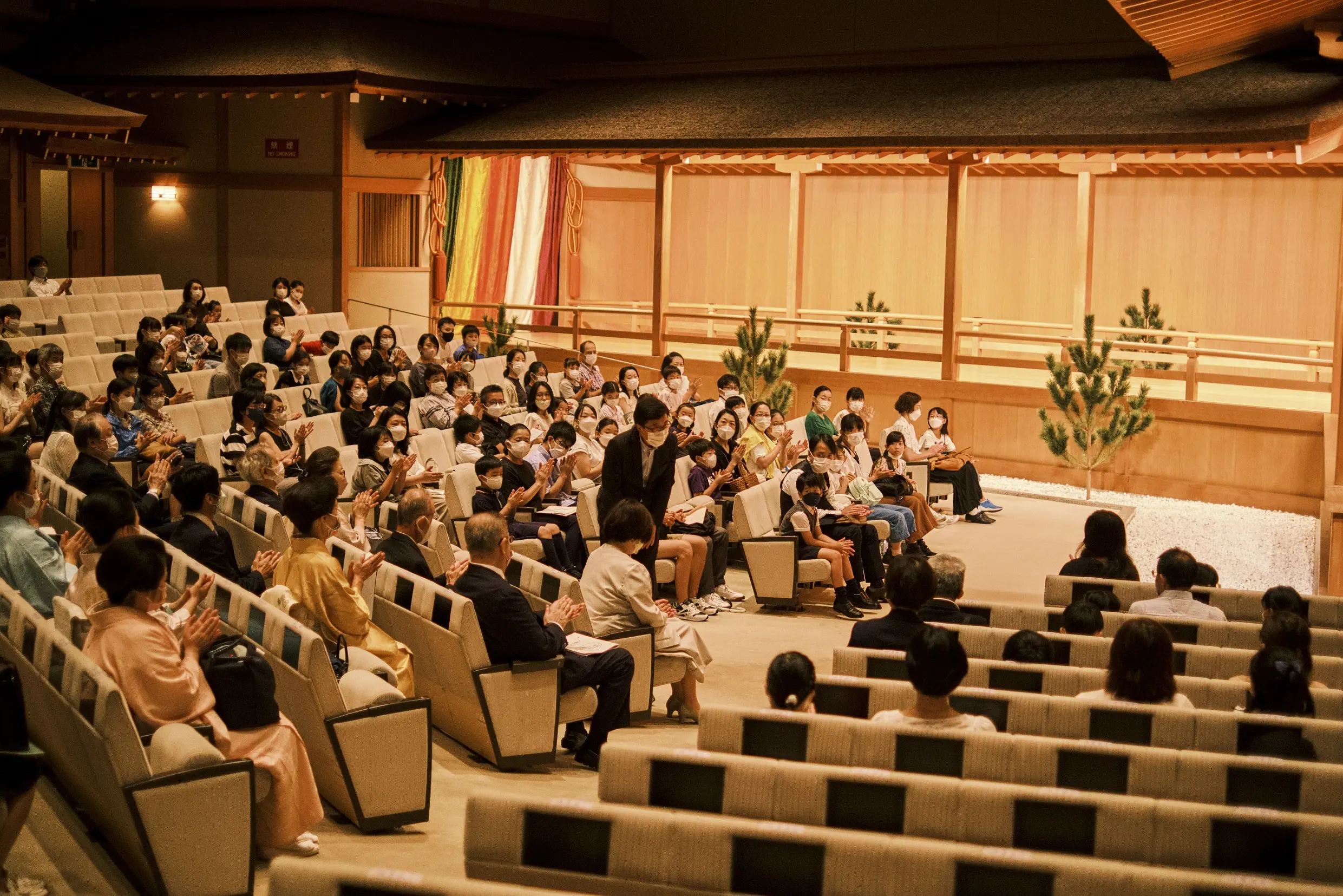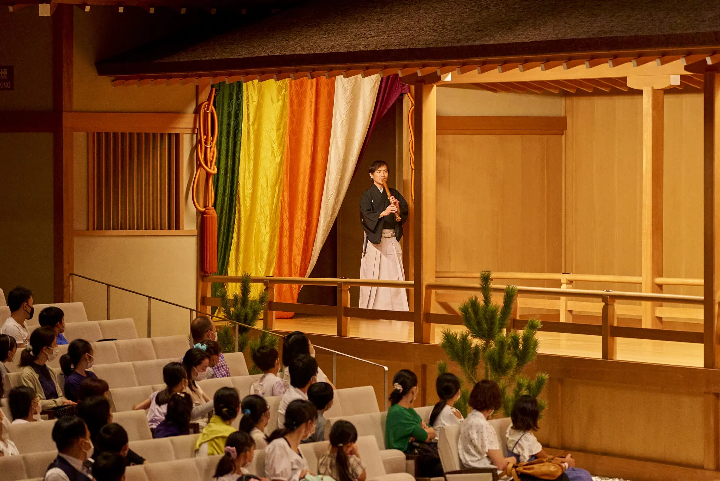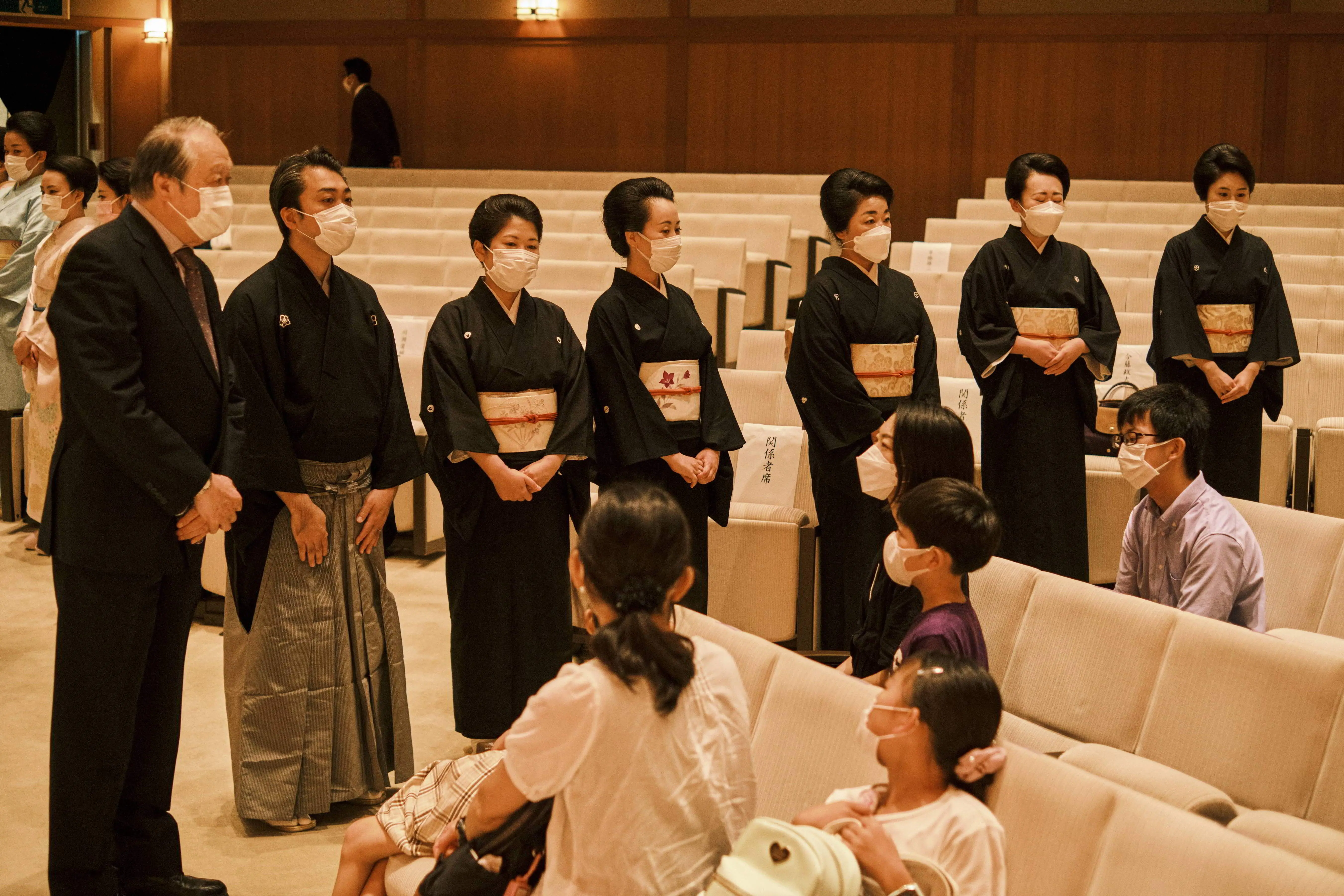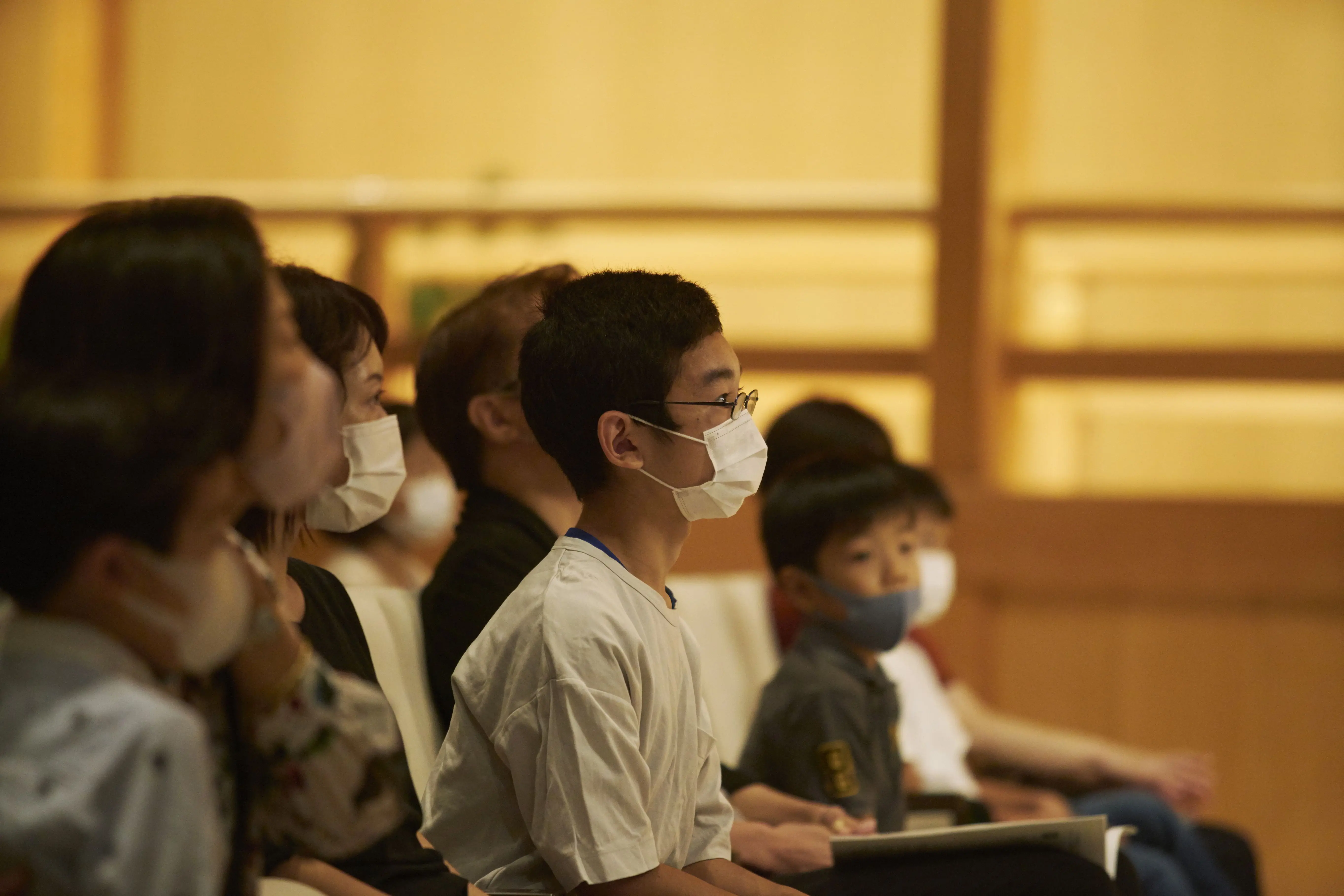 主催者のごあいさつの後は、これからお稽古する伝統芸能の実演がありました。子供たちは目の前で繰り広げられるプロのパフォーマンスに釘づけの様子で、「いつか自分もあんなふうにできるかな!?」と体も前のめりに。