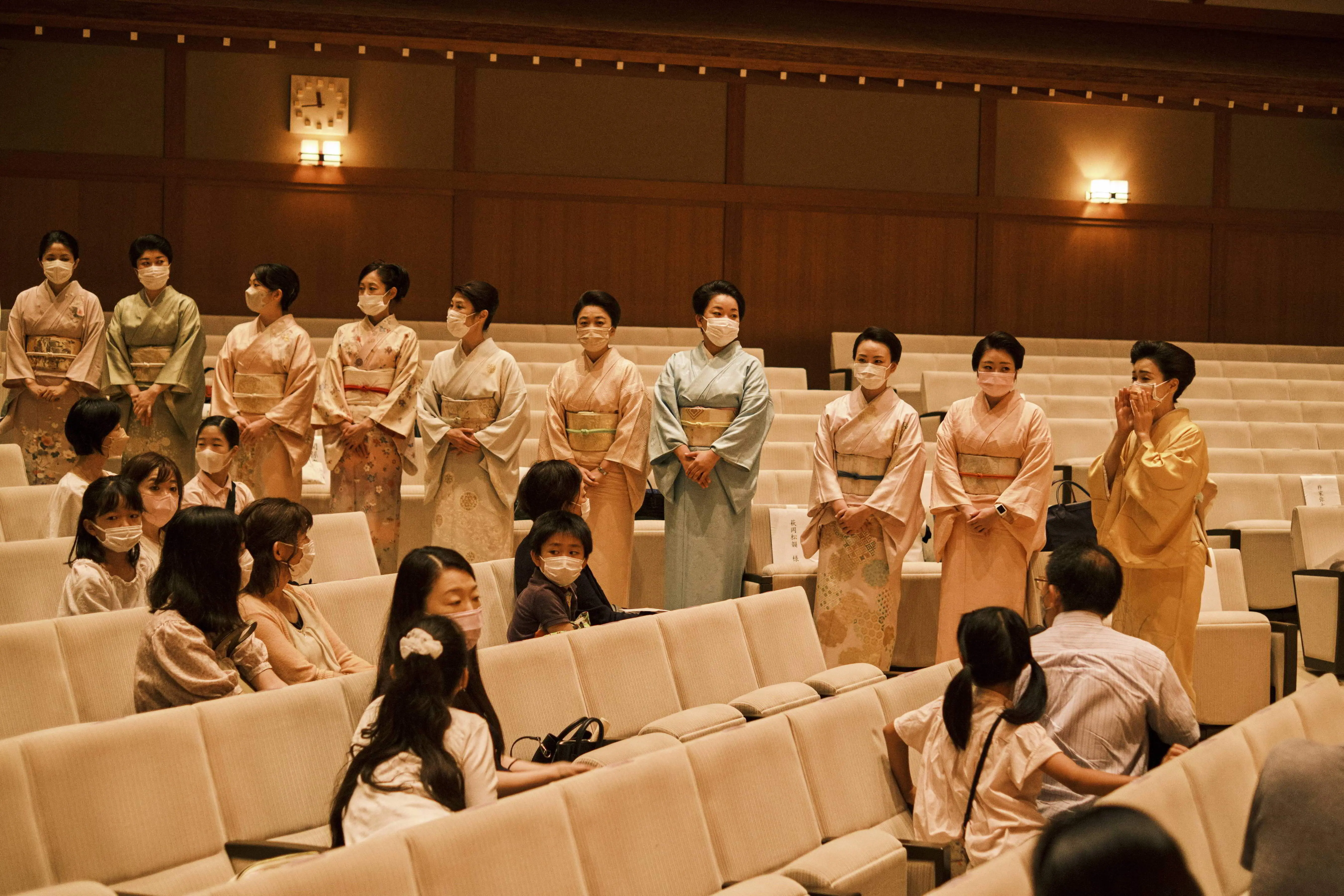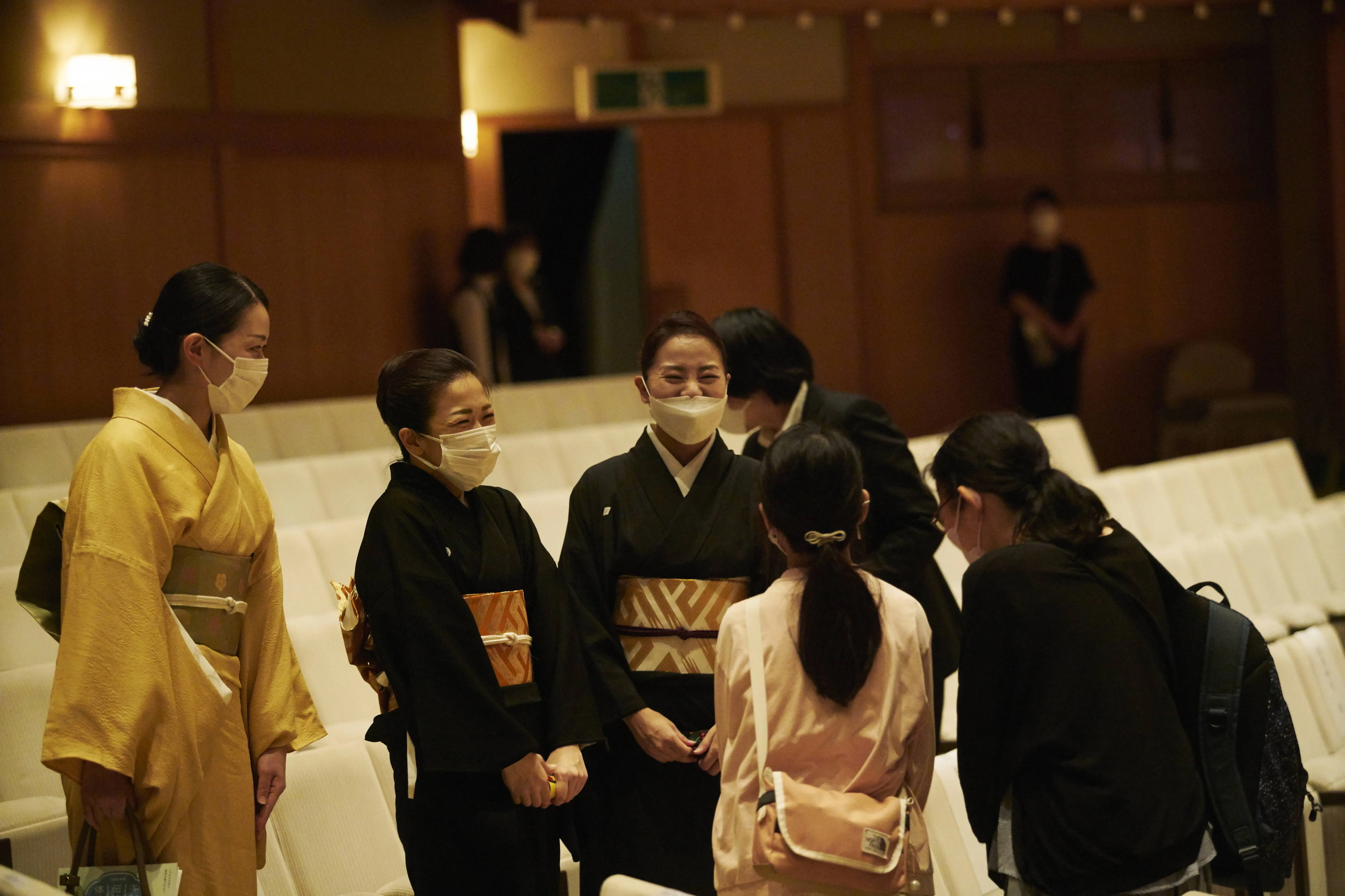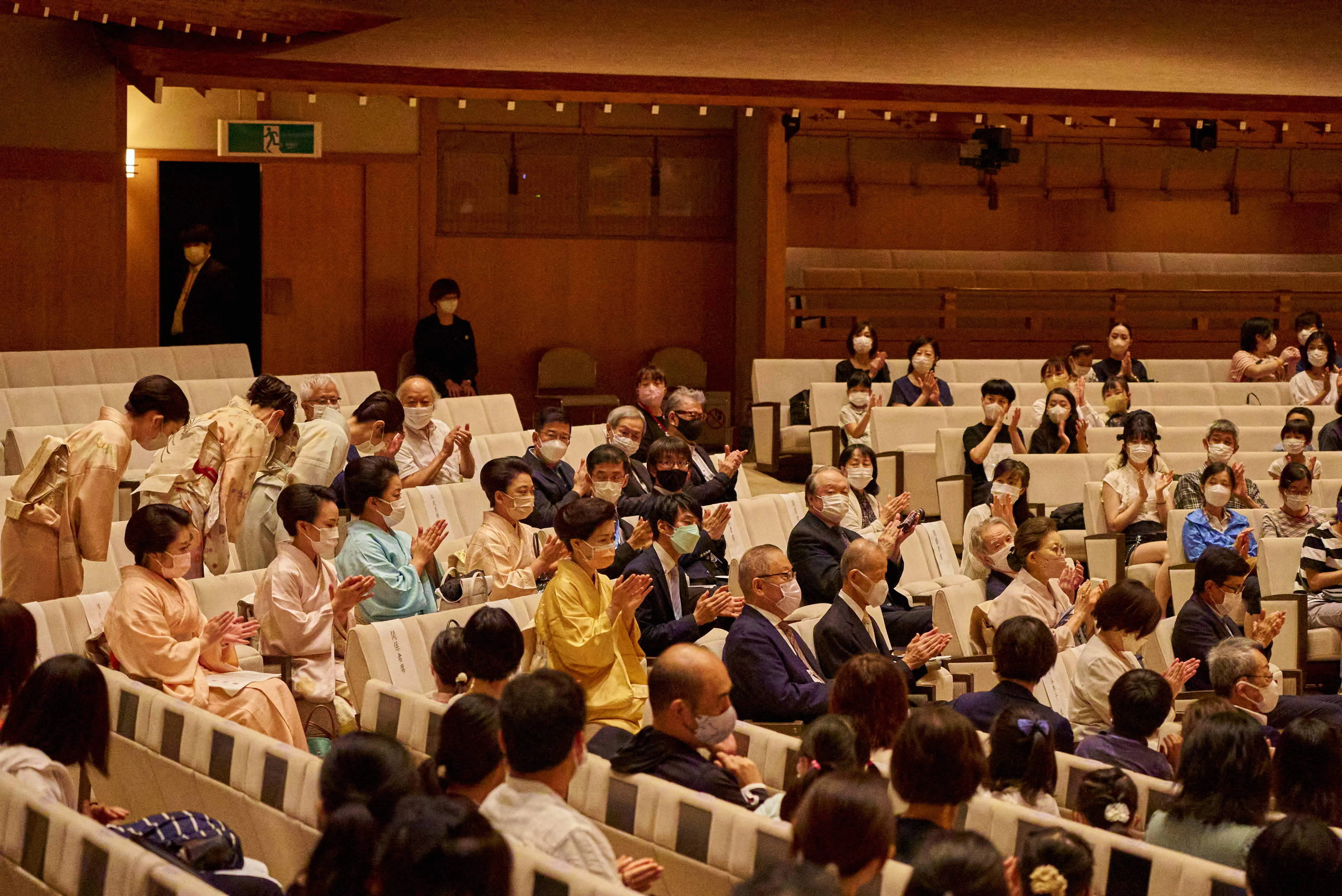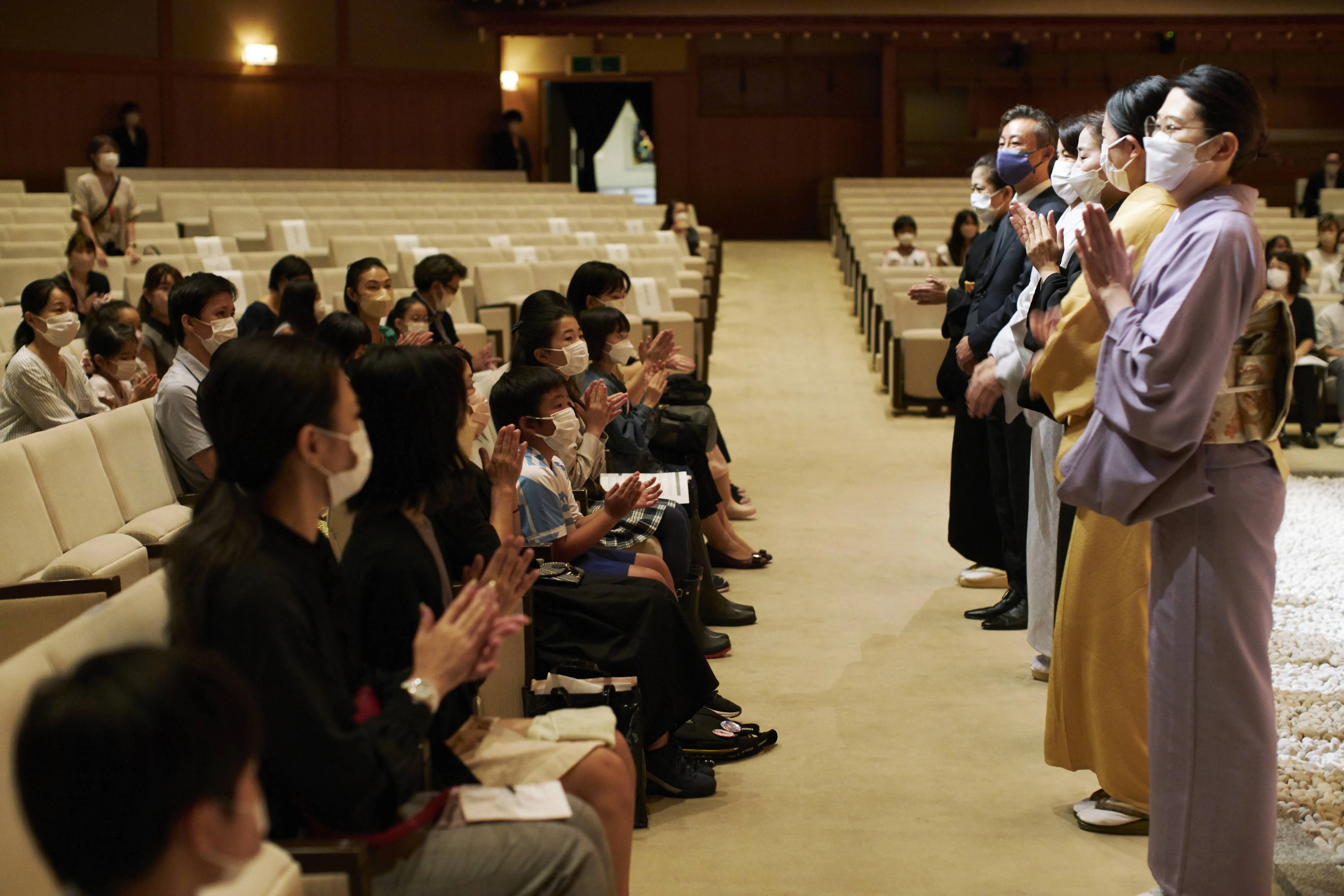 9月18日(日)、国立能楽堂にて開講式を開催。感染症予防対策の一環として、二部制で行いました。午前の部は三曲と長唄、午後の部は能楽と日本舞踊で、参加者、講師、関係者が一堂に会し、特別な「お稽古はじめ」の日をともに迎えました。あいにく、台風接近による大雨の悪天候ではありましたが、無事に式を終えることができました。