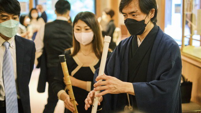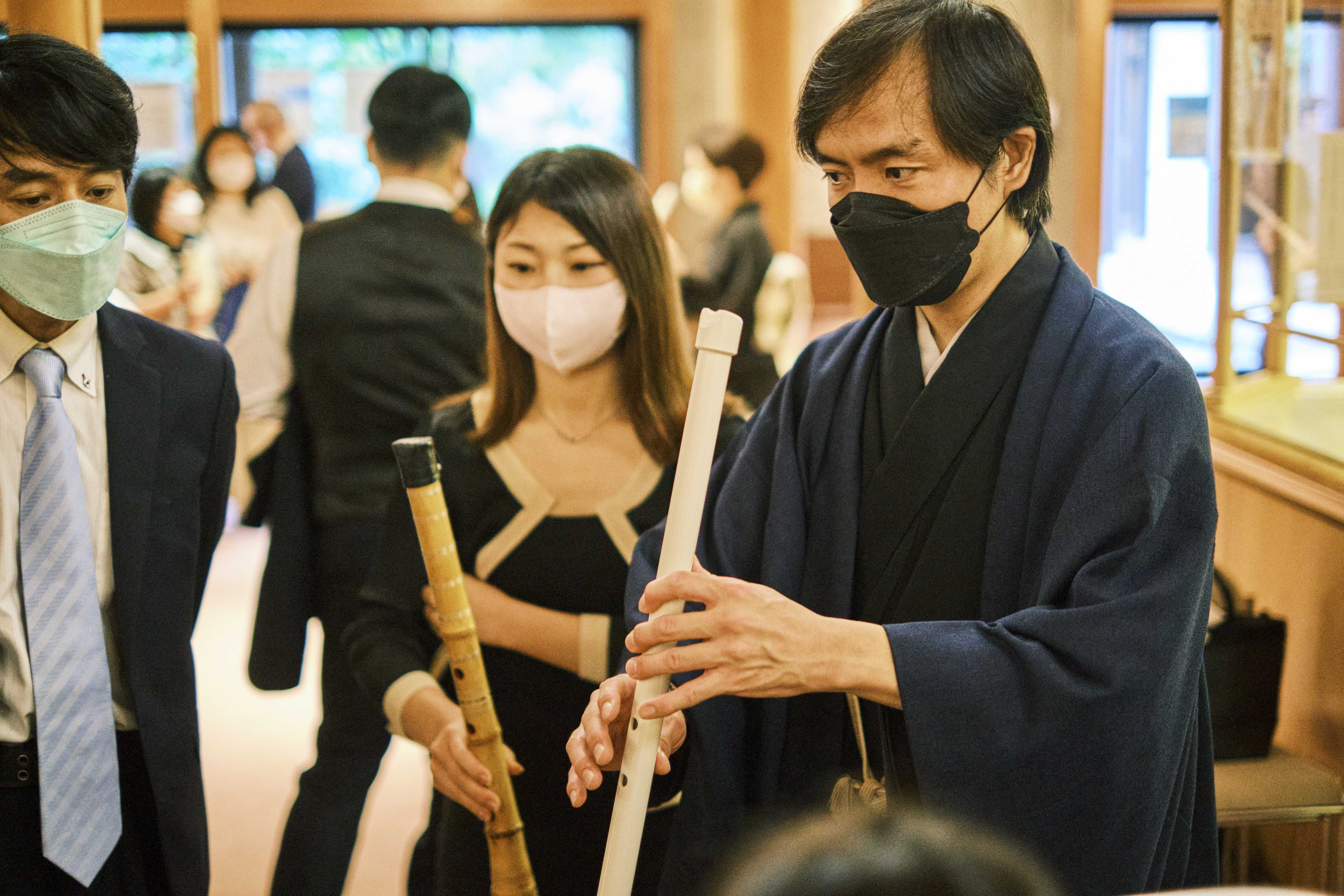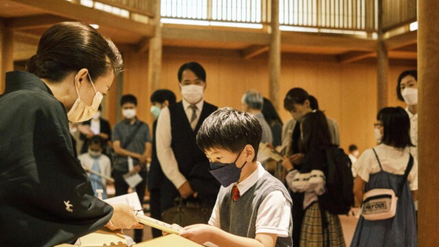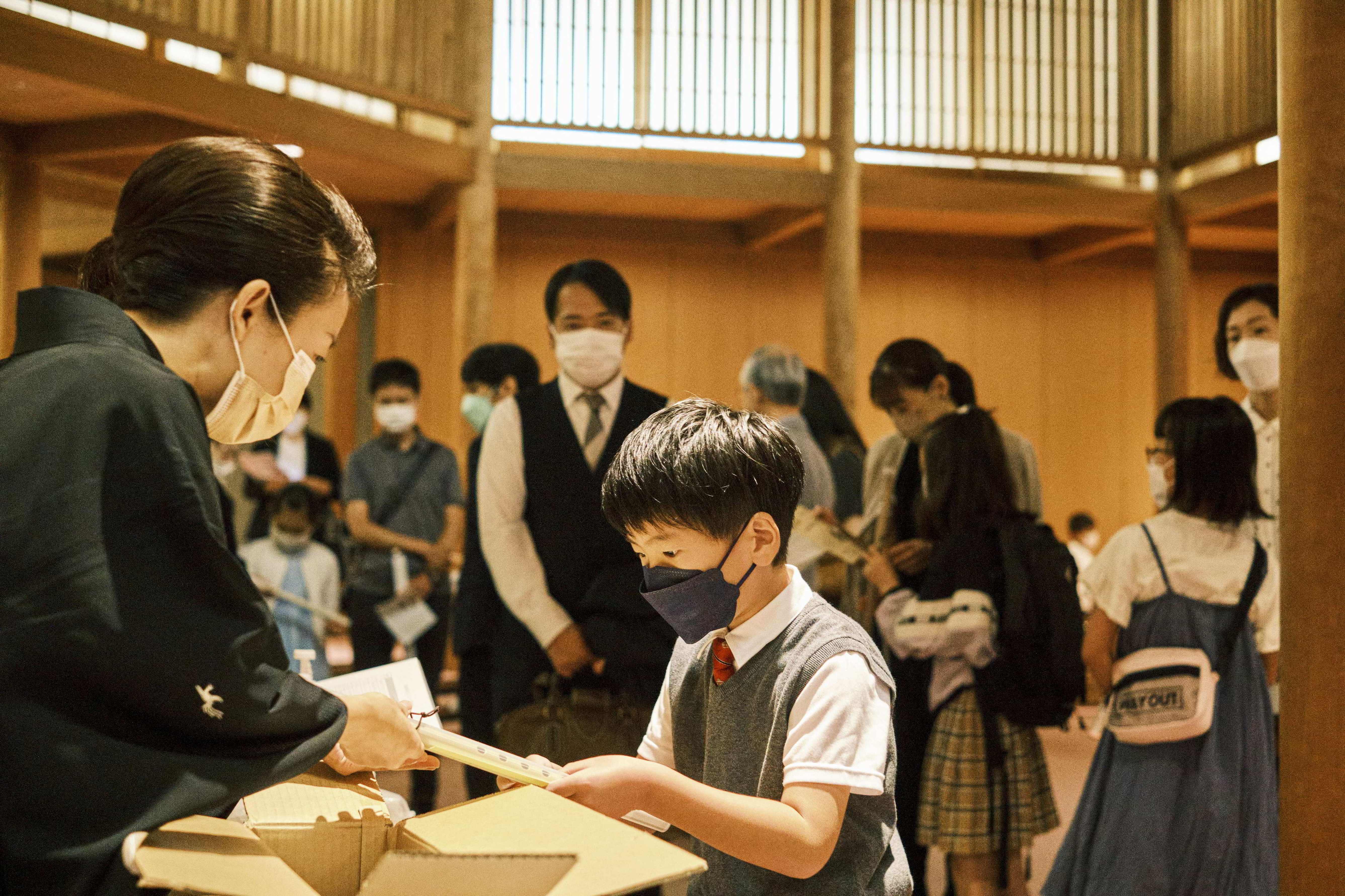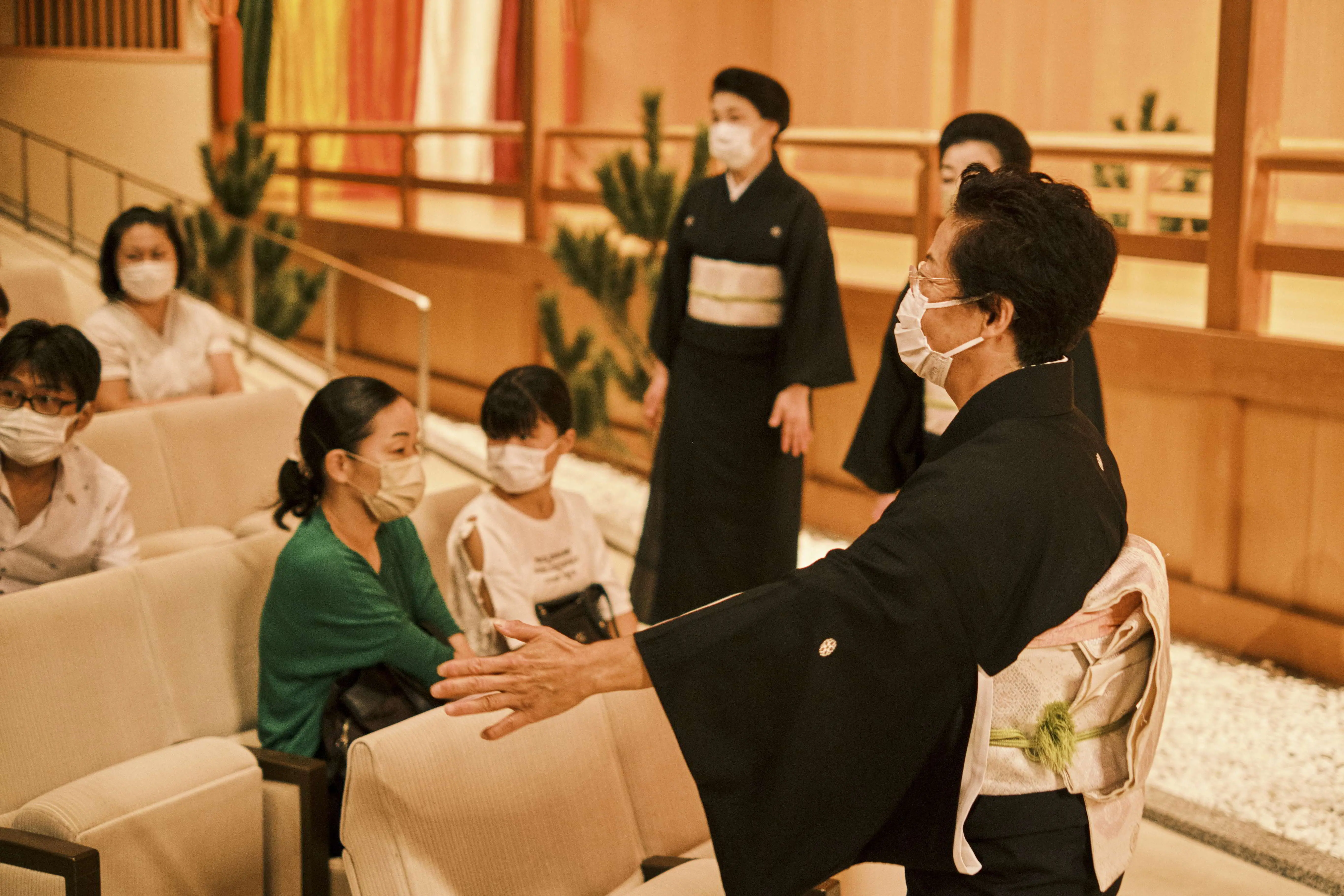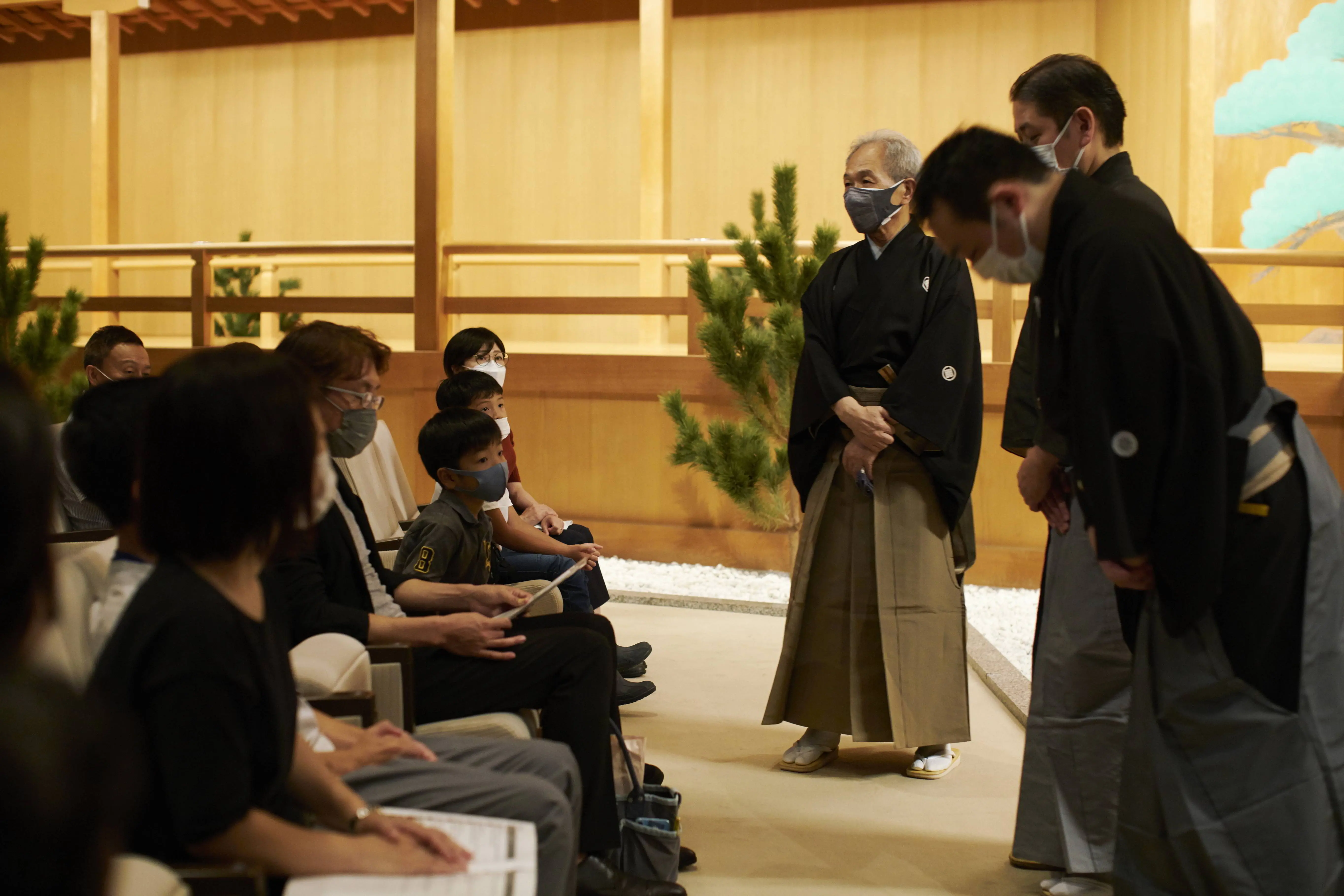 9月18日(日)、国立能楽堂にて開講式を開催。感染症予防対策の一環として、二部制で行いました。午前の部は三曲と長唄、午後の部は能楽と日本舞踊で、参加者、講師、関係者が一堂に会し、特別な「お稽古はじめ」の日をともに迎えました。あいにく、台風接近による大雨の悪天候ではありましたが、無事に式を終えることができました。