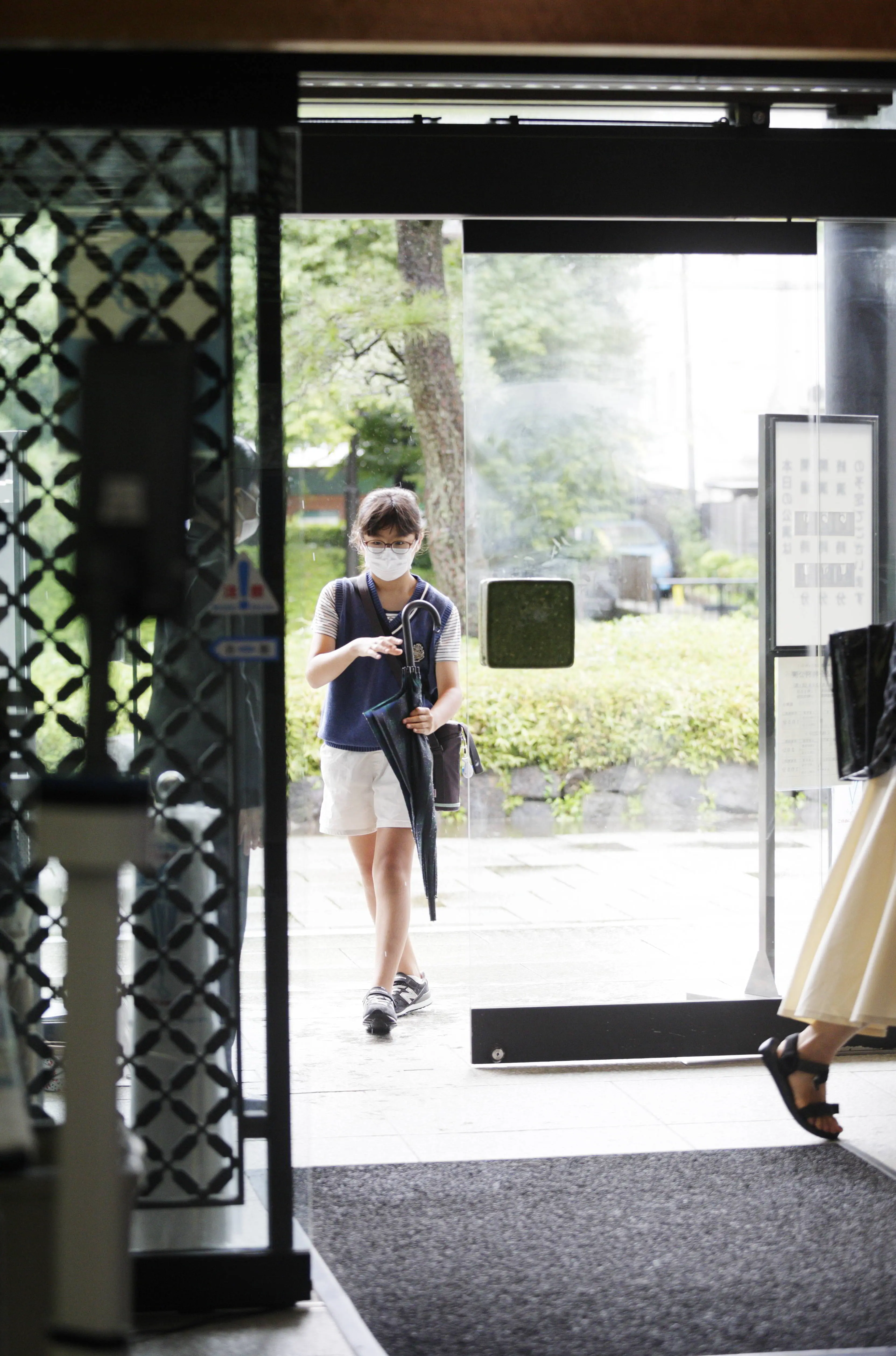 そして、「はい。みんな、一度立ってごらん」と子供たちに呼びかけ、「きちんと腰をおろすことができるかな。厳しく言えば、この腰かけるものが外れても、後ろにひっくり返ったりしない体でないと、舞台の姿勢にはなりません。そういうことを少しでも稽古しながら発見してくださると、とても素敵だなと思います」と語りかけました。