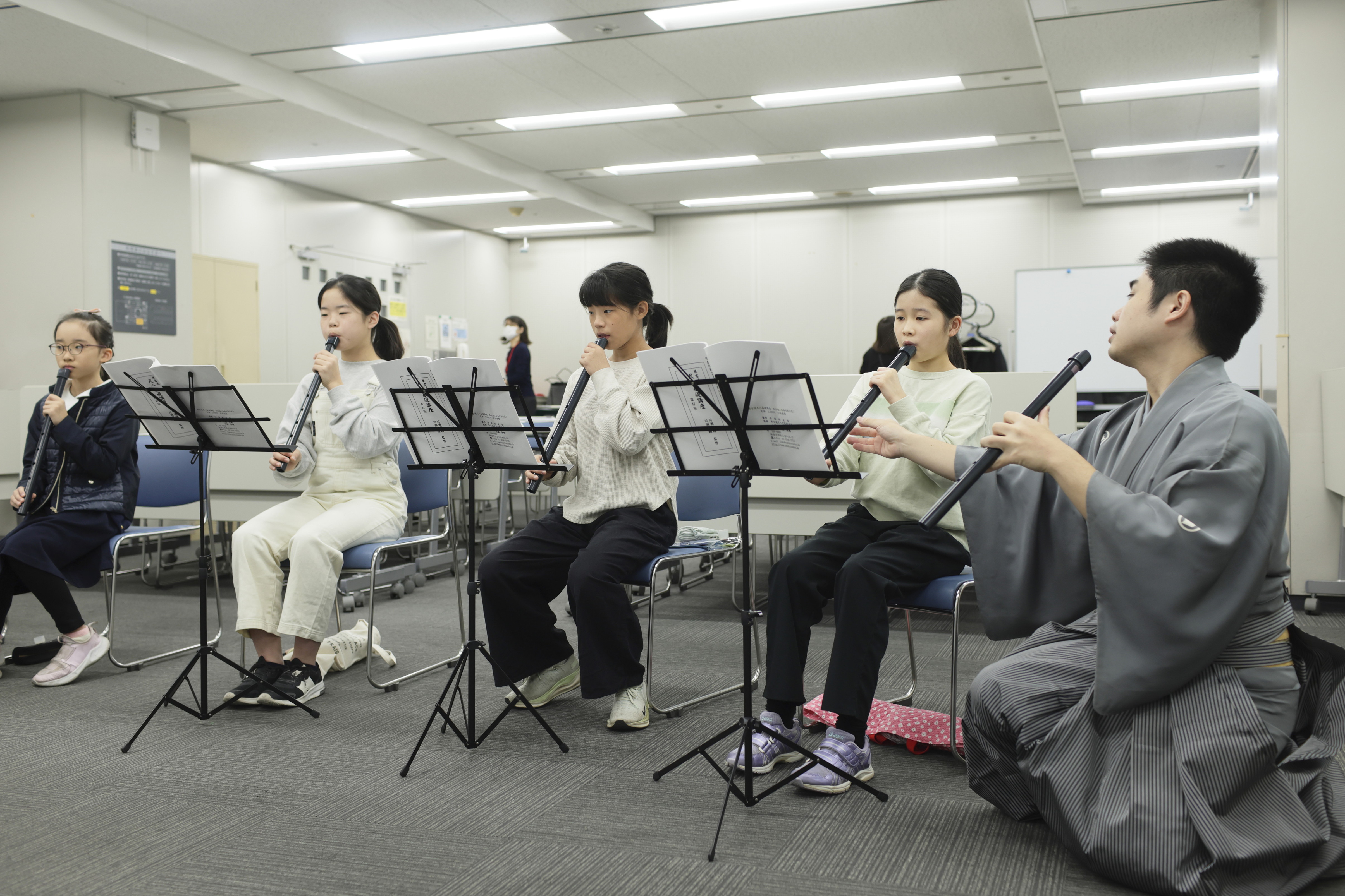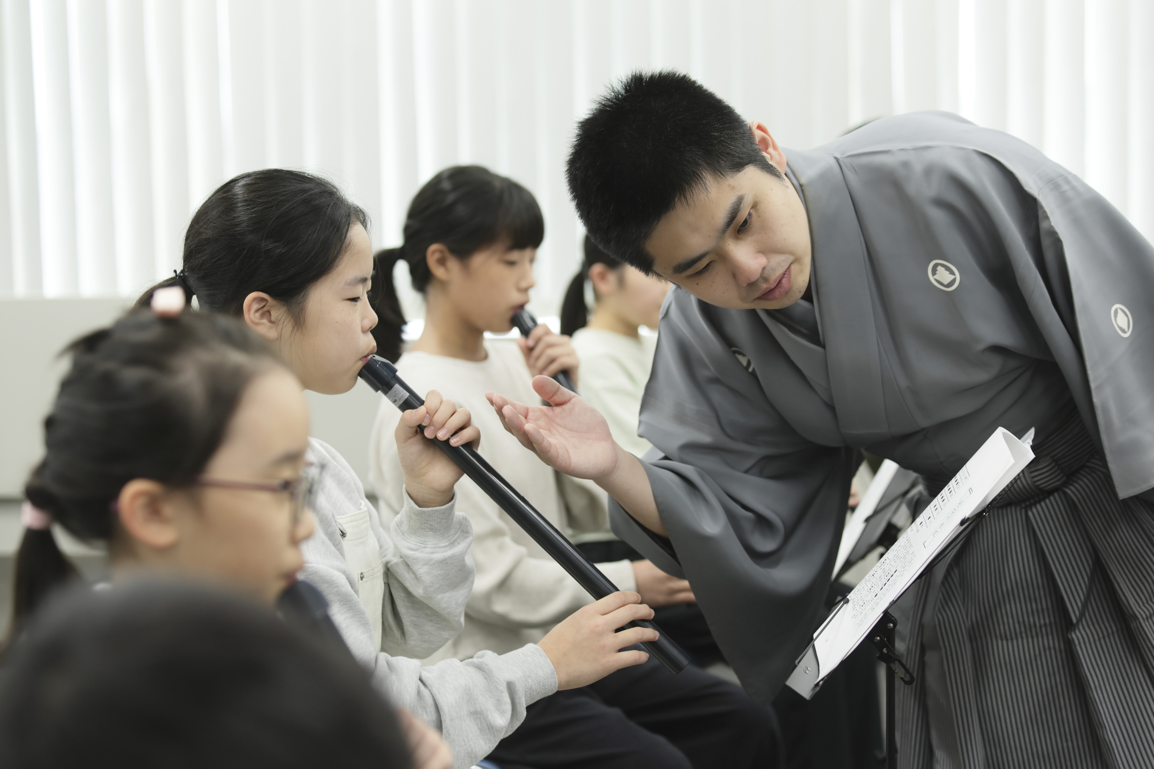 フォトグラファー・武藤奈緒美さんが、ある日のお稽古場で撮影した尺八コースの子供たちの表情や仕草をお楽しみください。
