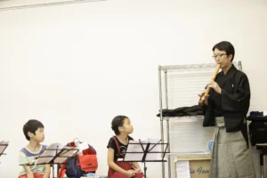 尺八Aクラスは、小学校中学年の子供が多く、みんな仲良し。