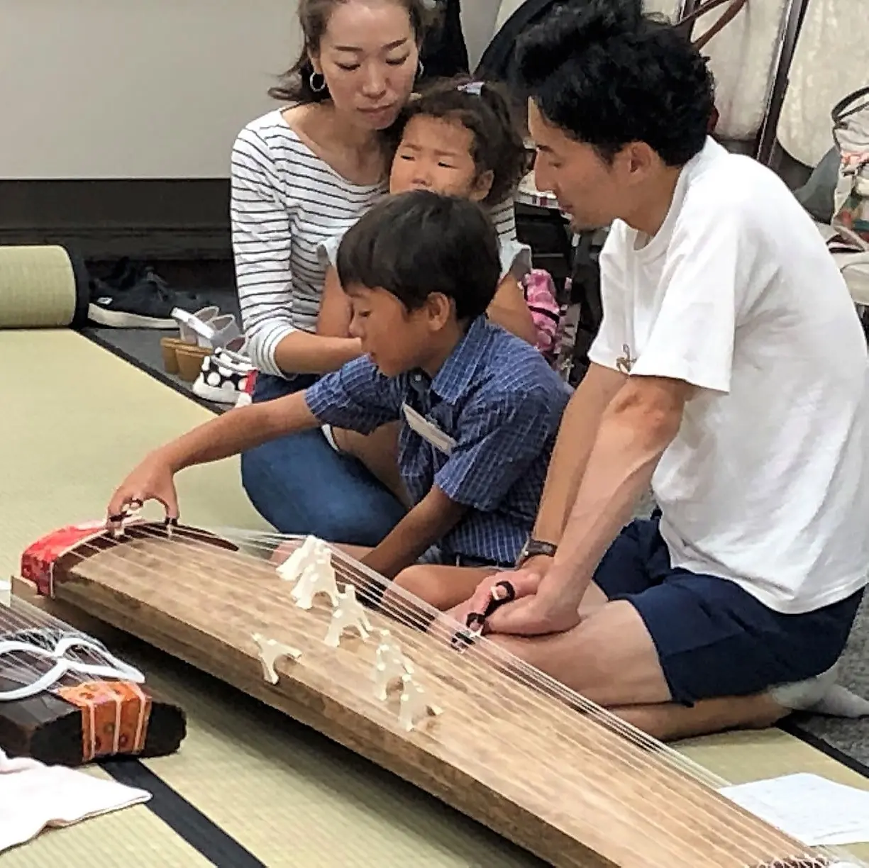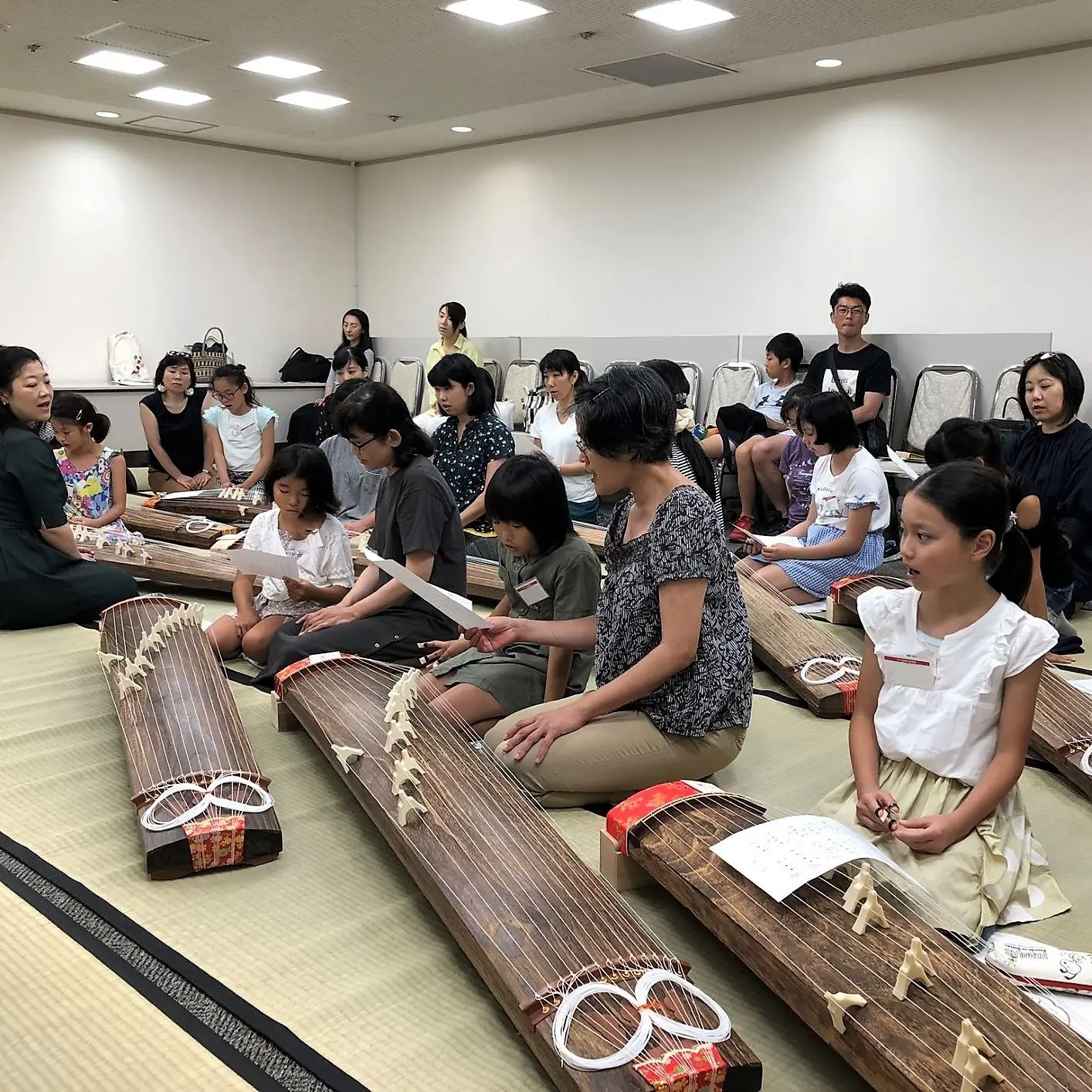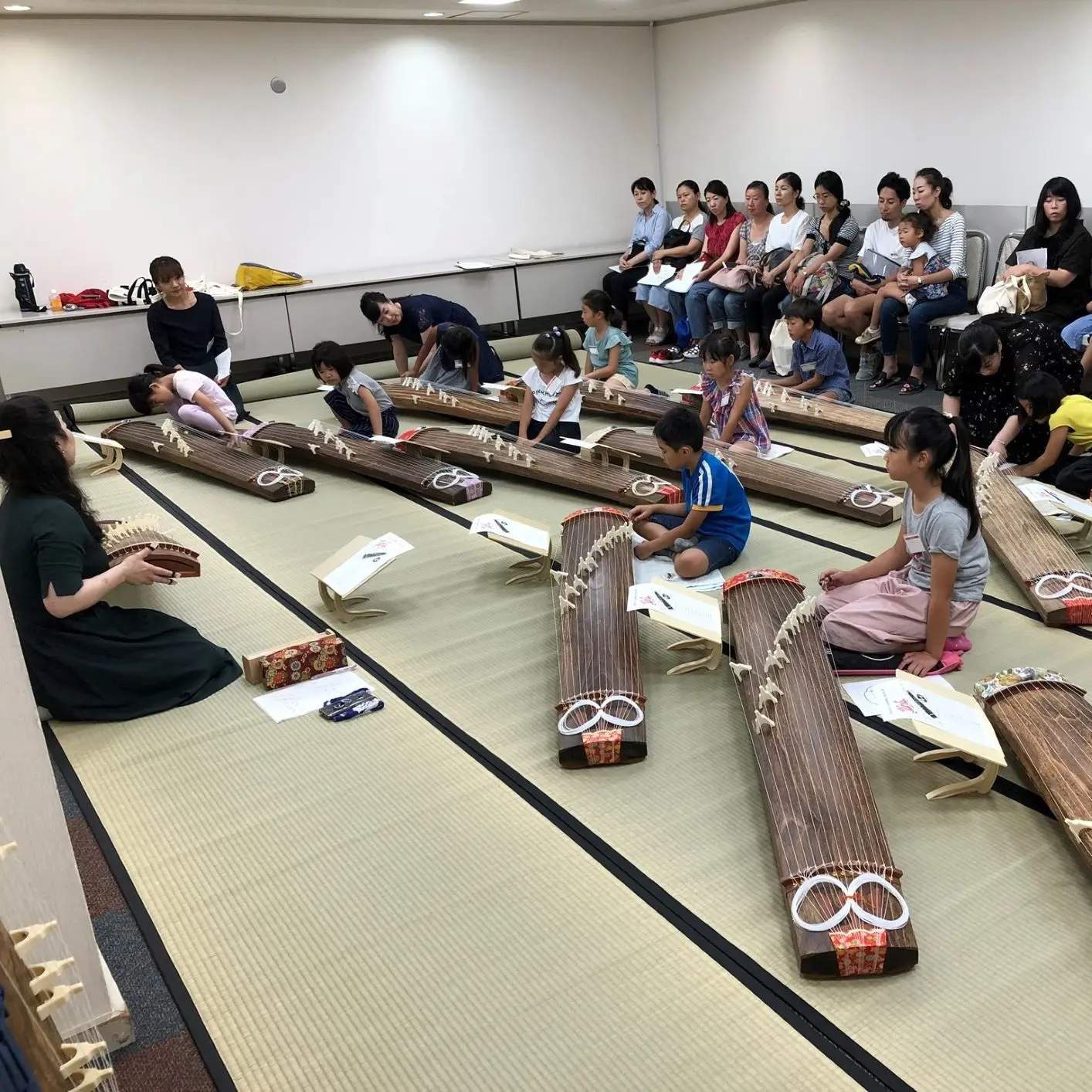 箏曲コースの初日は、親子で体験が恒例。