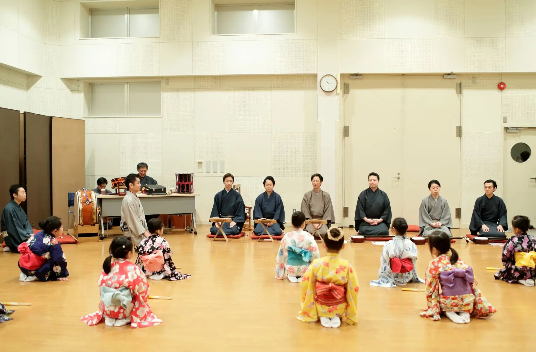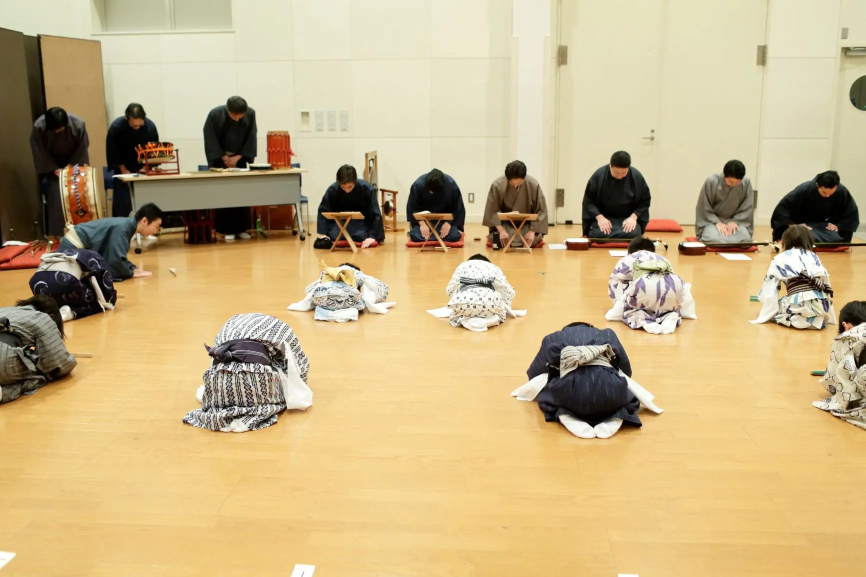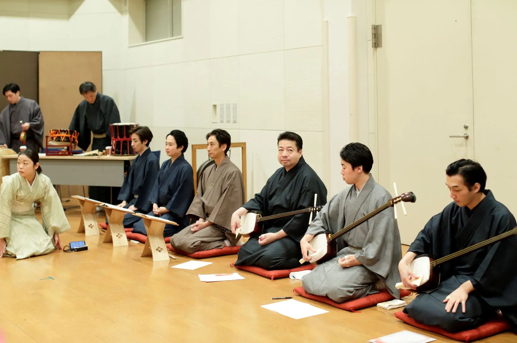 唄、三味線、囃子の先生方がお稽古場に勢揃い。
