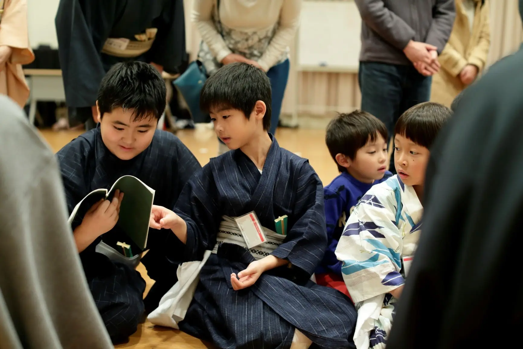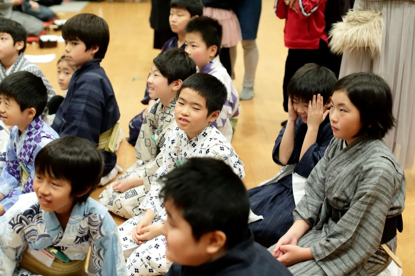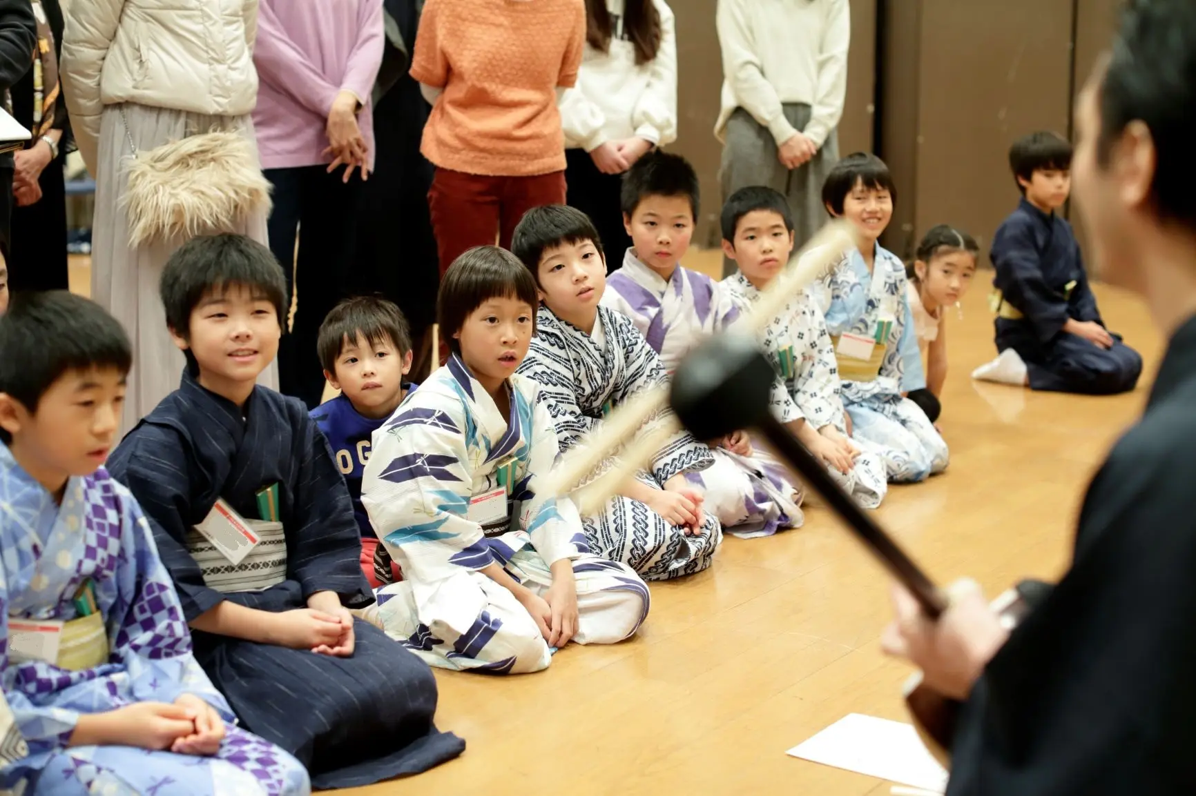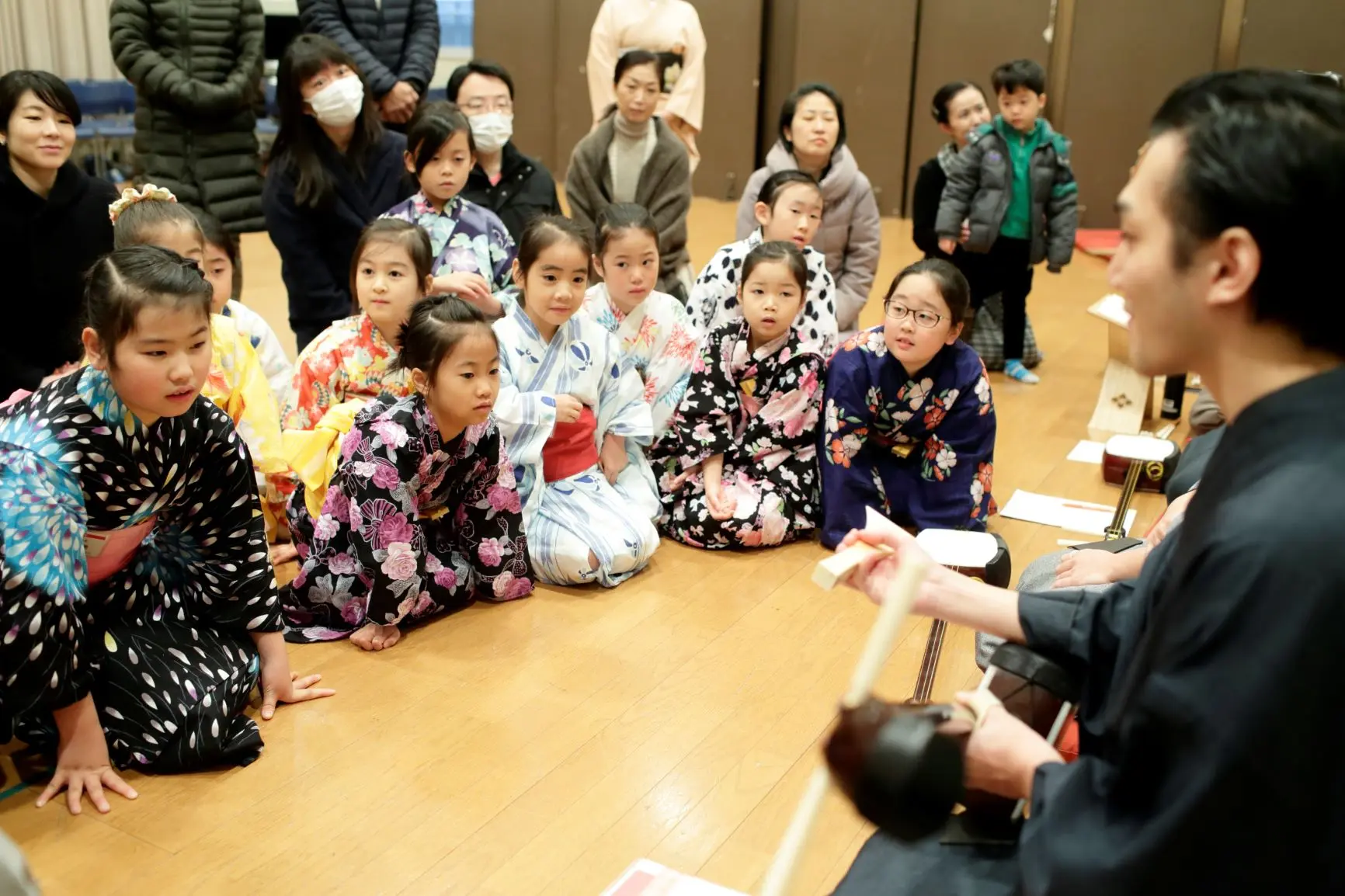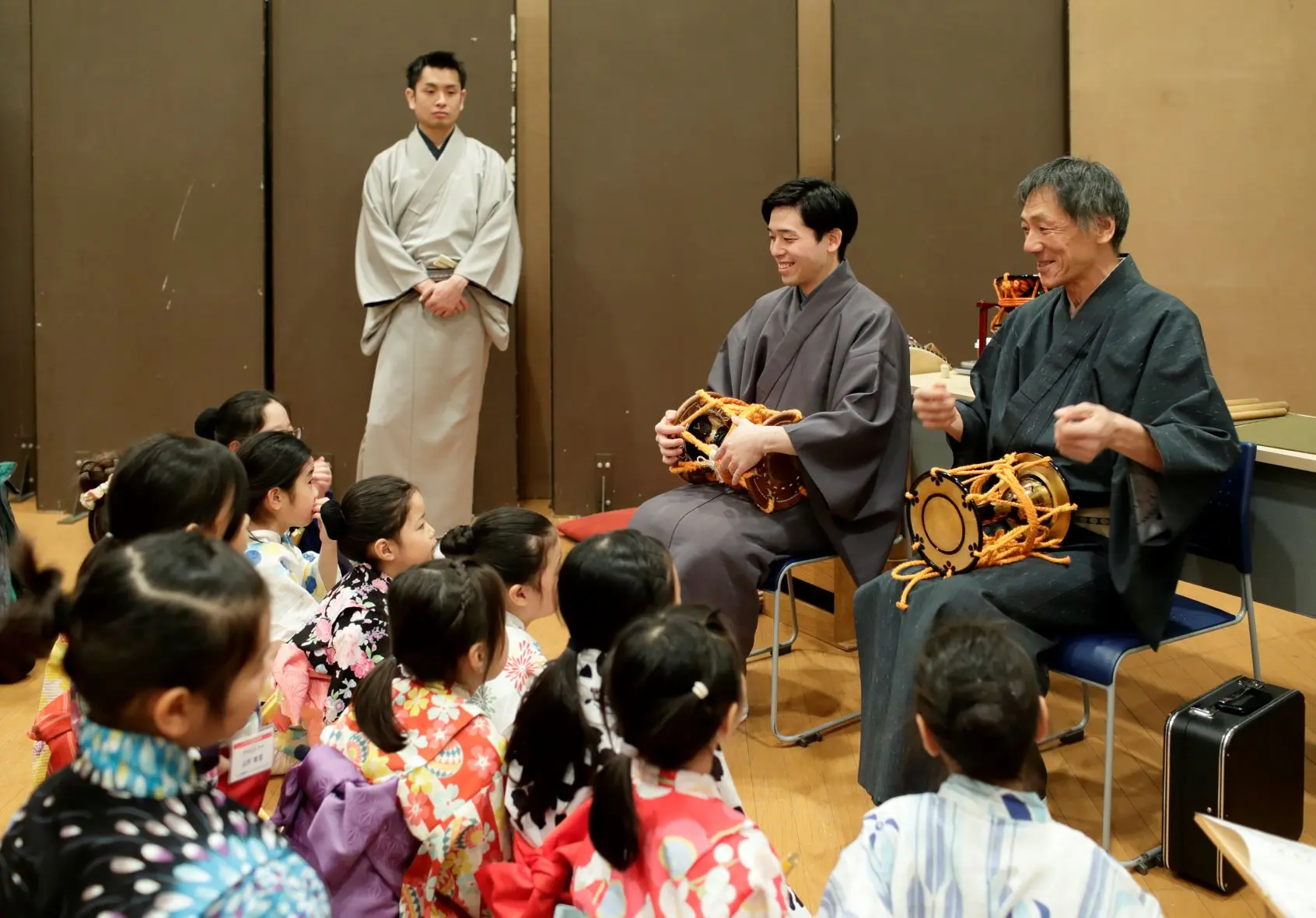 楽しいお話に興味津々。お稽古場が笑いにあふれました。