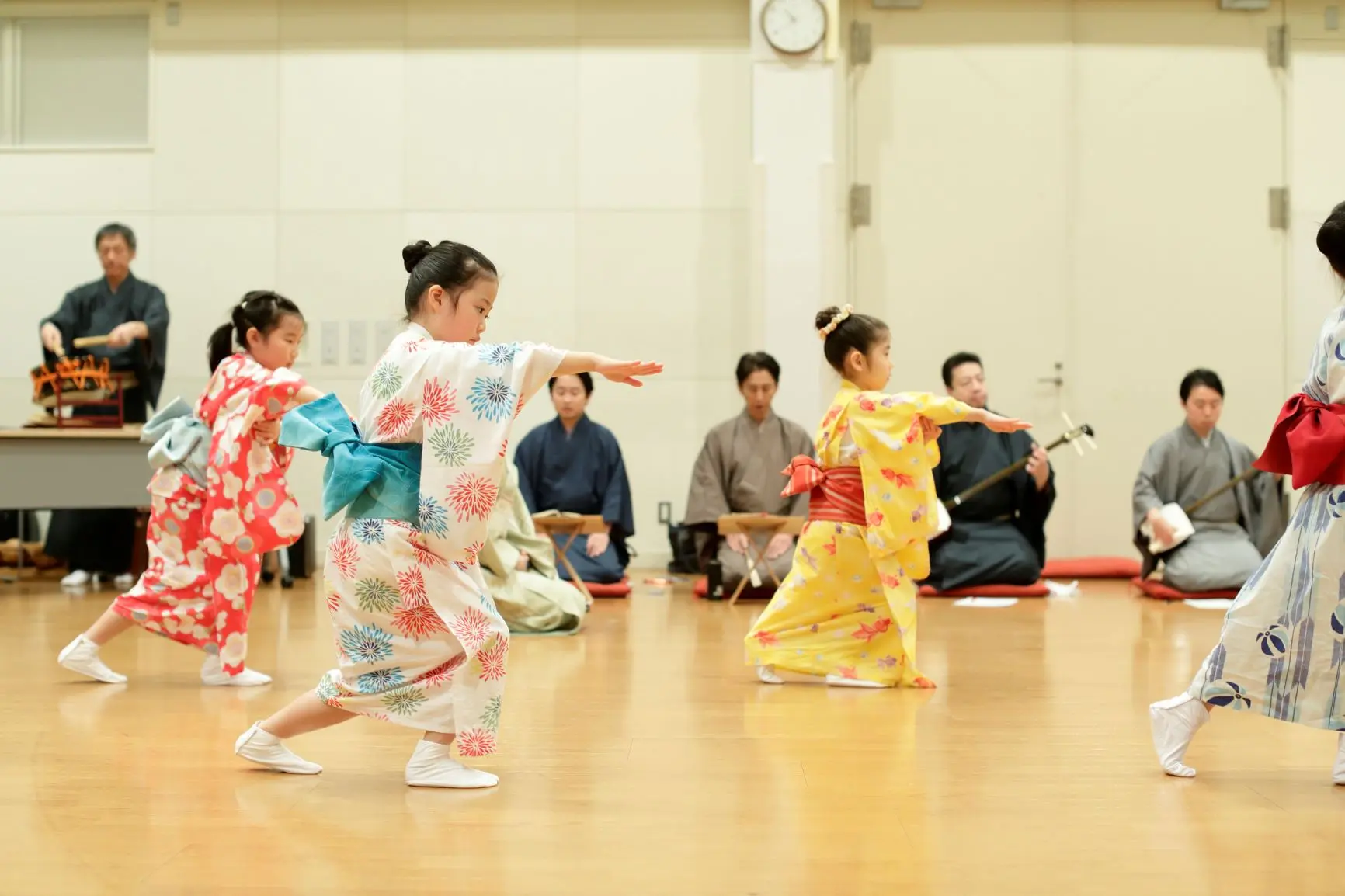 お稽古では録音した音楽を使いますが、本番は生演奏です。