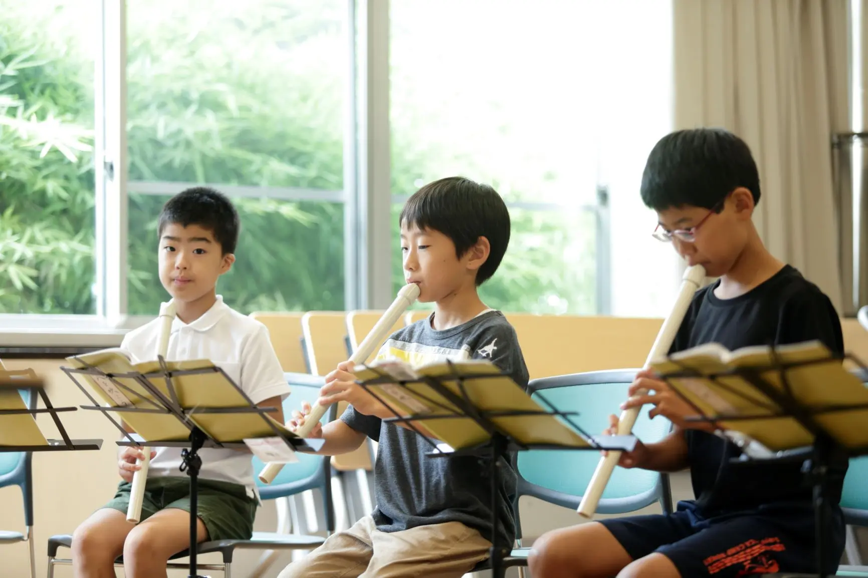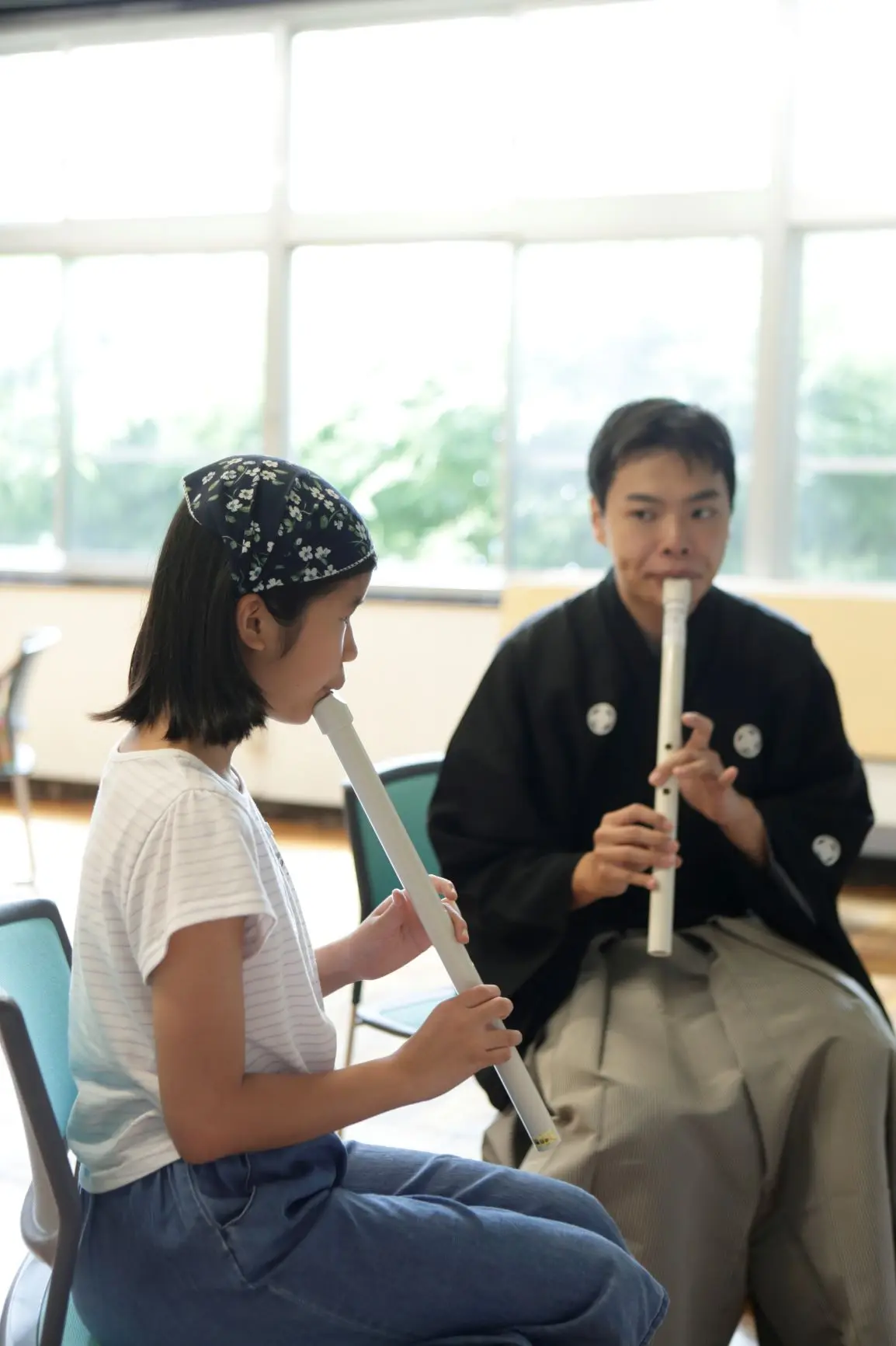 子供たちの真剣な眼差し ~尺八